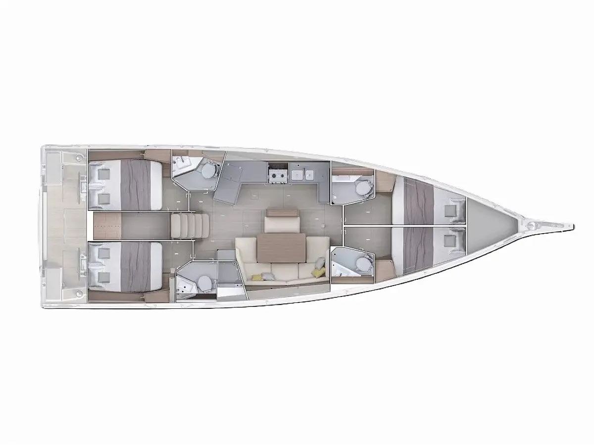 Cuscini in pozzetto, Sprayhood, Bimini, Pannelli solari, WC elettrico, Frigorifero, Altoparlanti in pozzetto