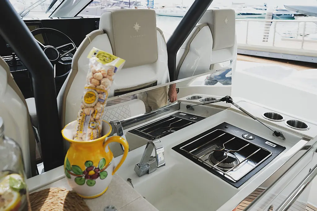 Teak in pozzetto , Frigorifero, Altoparlanti in pozzetto, Aria condizionata, Piattaforma da bagno, Generatore