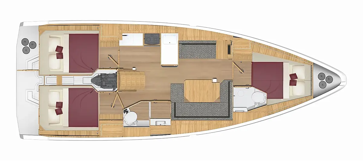 Холодильник, Кондиционер, Динги, Спрейхуд, Wi-Fi и Интернет, Динамики в кокпите, Солнечные панели, Бимини, Тиковый кокпит