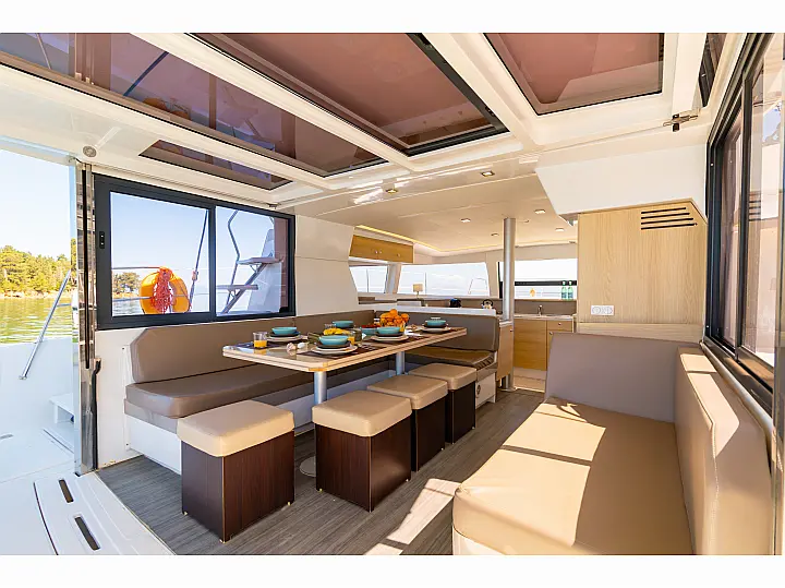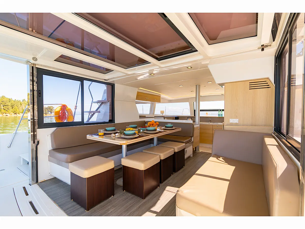 Спрейхуд, Бимини, Подушки в кокпите, Электрические лебедки, Динги, Генератор, Кондиционер, Солнечные панели, Инвертор, Холодильник