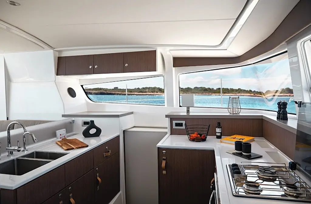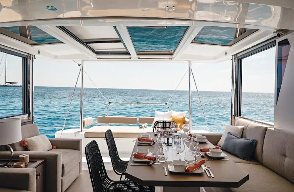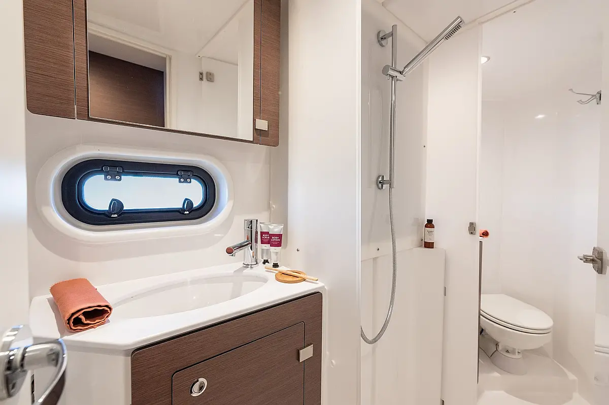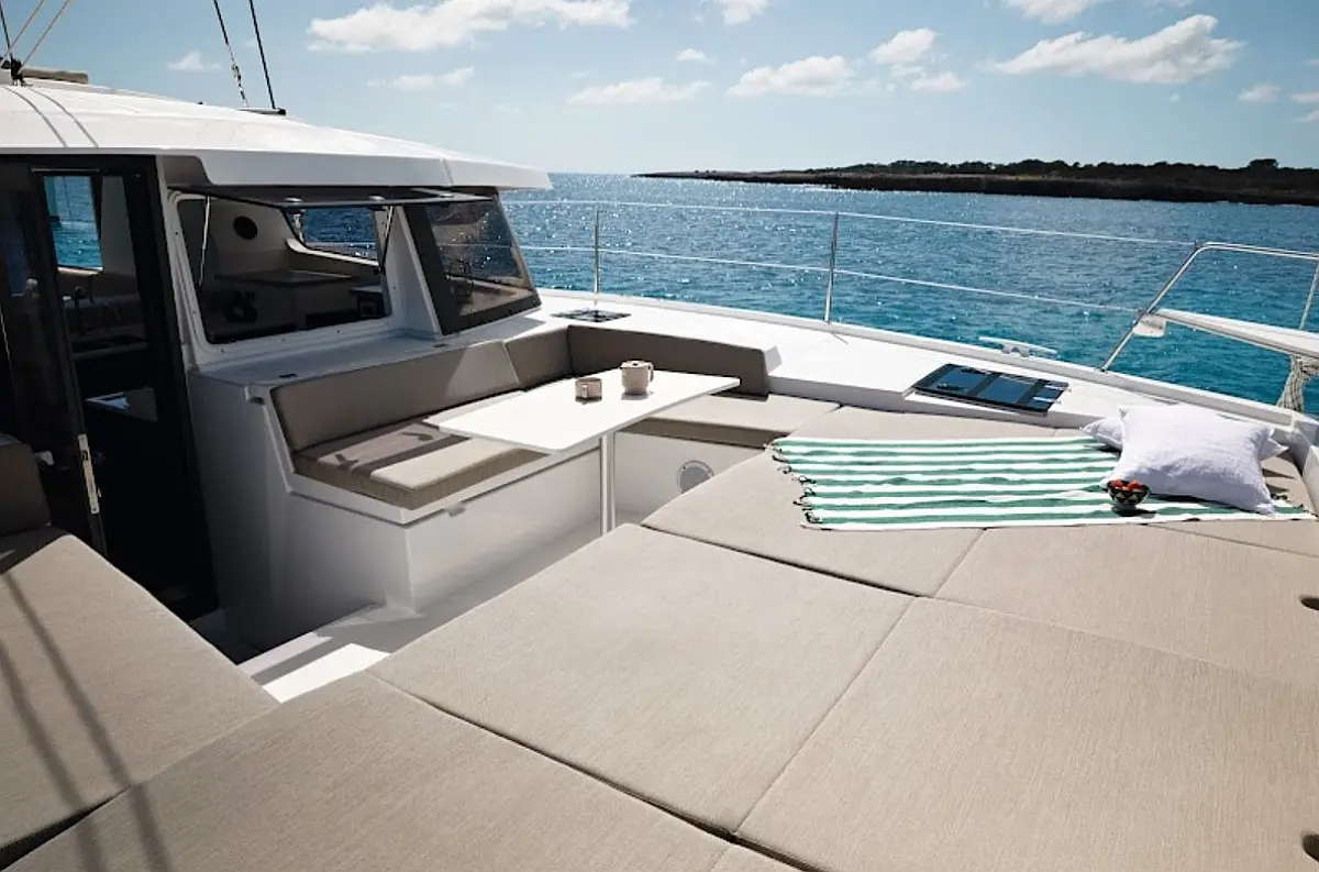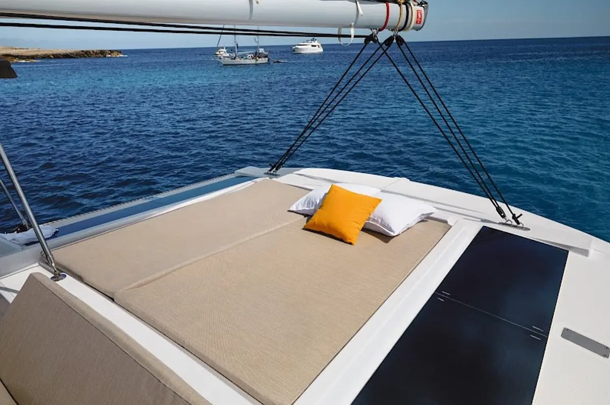 Бимини, Спрейхуд, Динамики в кокпите, Динги, Ледогенератор, Инвертор, Сточный бак, Солнечные панели, Подушки в кокпите, Плавательная платформа, Флайбридж, Кофеварка, Холодильник