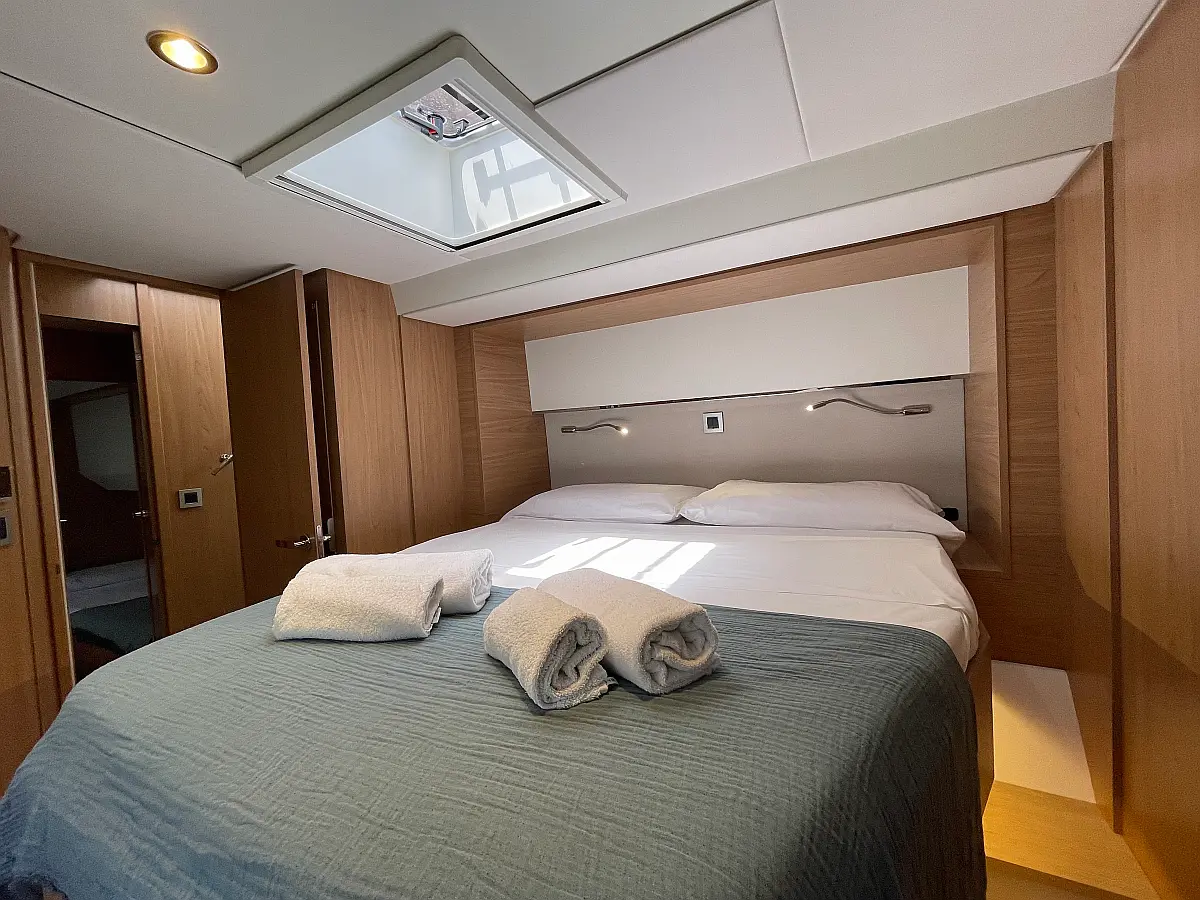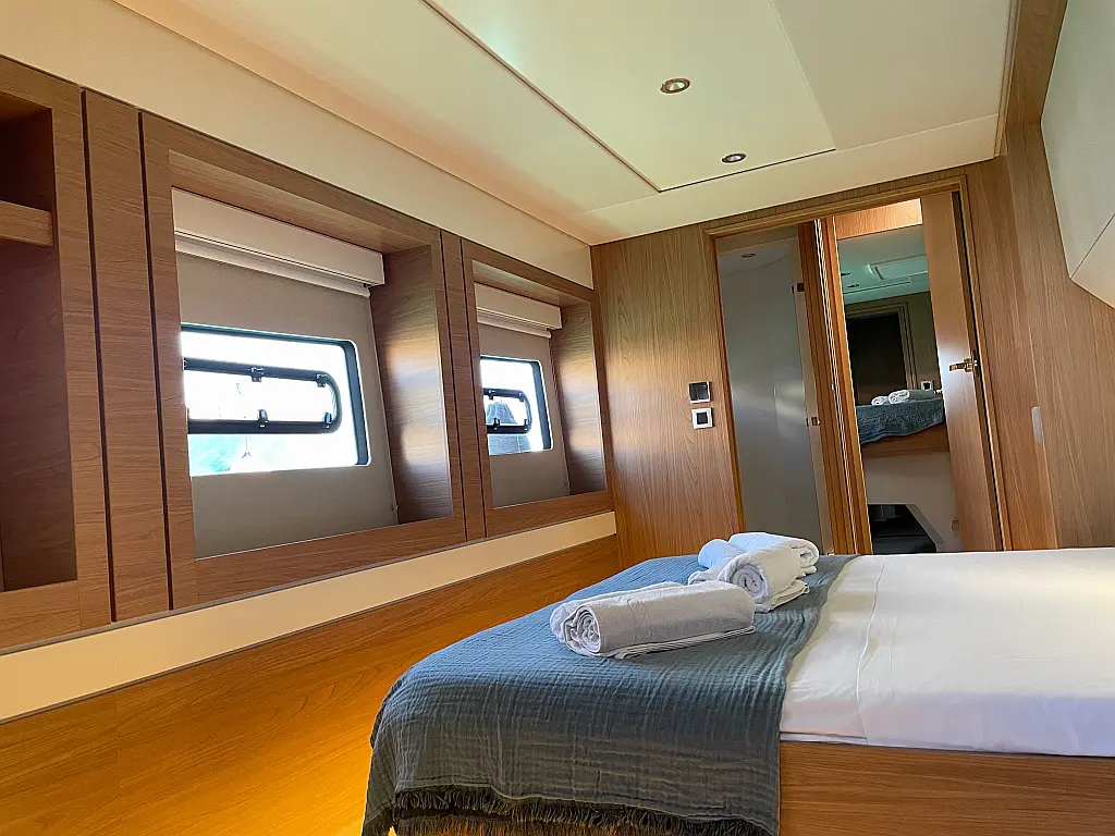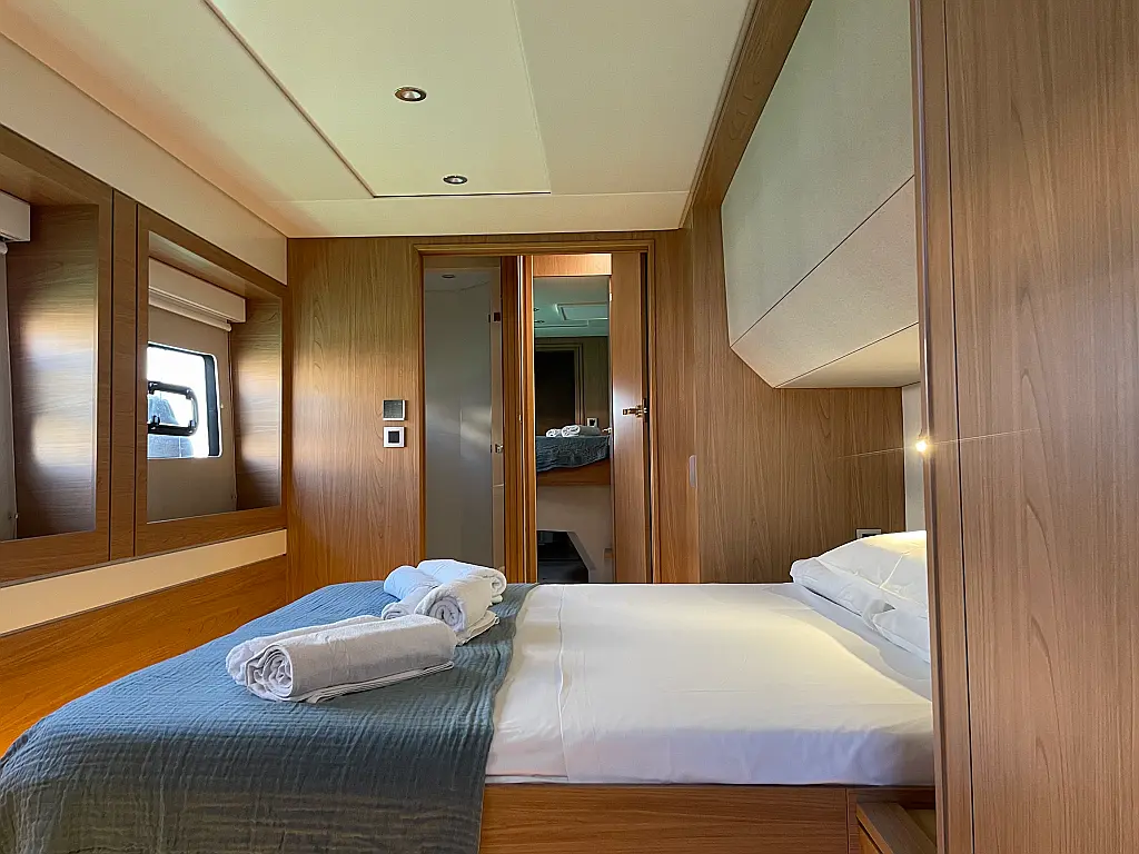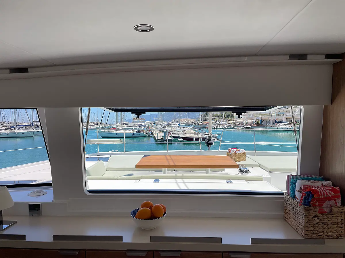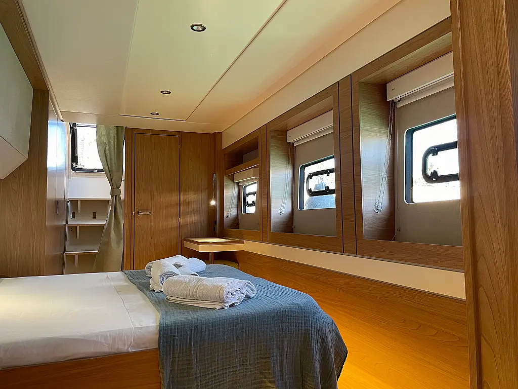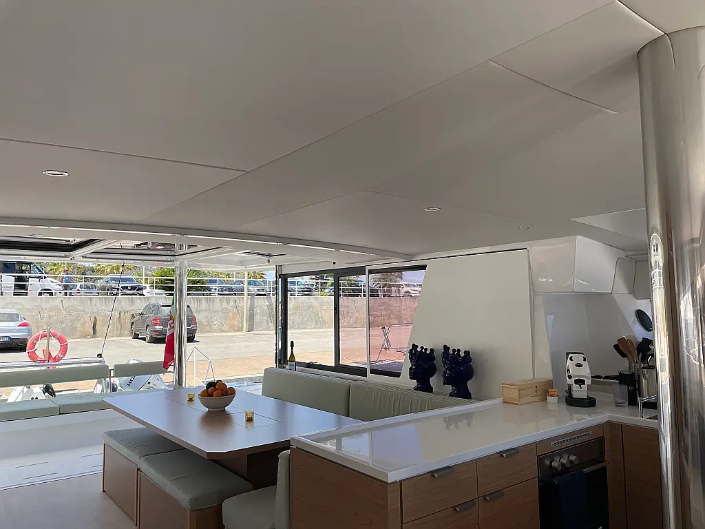Wi-Fi и Интернет, Кондиционер, Отопление, Бимини, Тиковая палуба, Холодильник, Генератор, Солнечные панели, Динги, Подвесной мотор, Опреснитель морской воды, Электрический туалет, Динамики в кокпите, Ледогенератор, Кофеварка, Подушки в кокпите, Инвертор