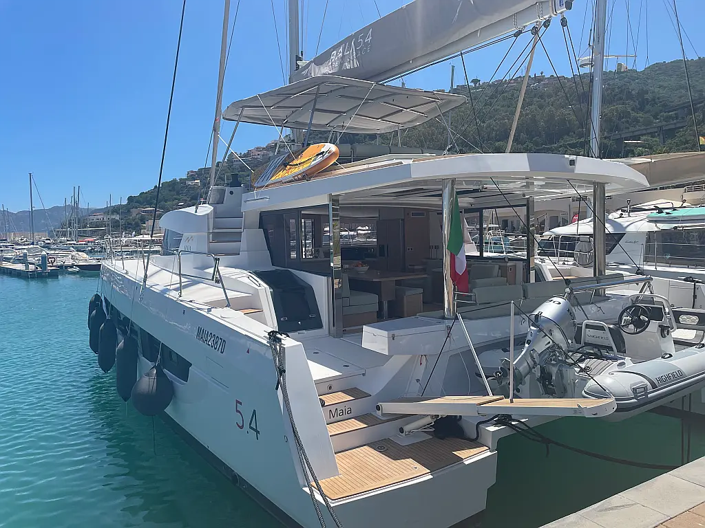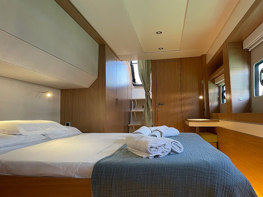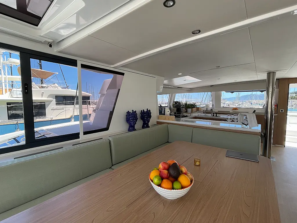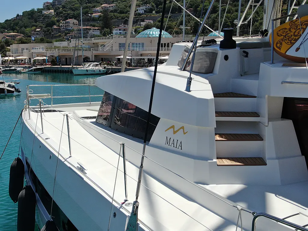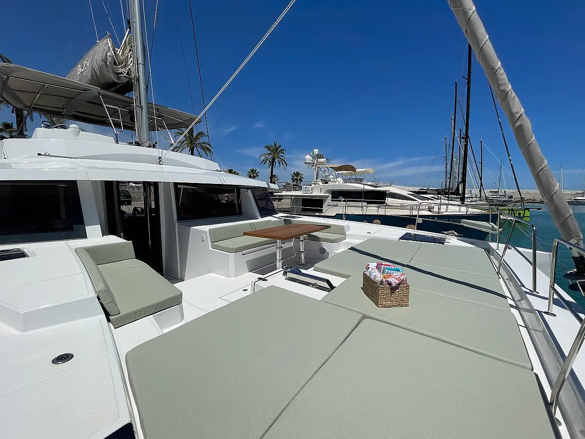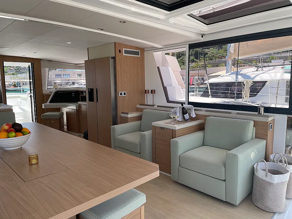 Wi-Fi и Интернет, Кондиционер, Отопление, Бимини, Тиковая палуба, Холодильник, Генератор, Солнечные панели, Динги, Подвесной мотор, Опреснитель морской воды, Электрический туалет, Динамики в кокпите, Ледогенератор, Кофеварка, Подушки в кокпите, Инвертор
