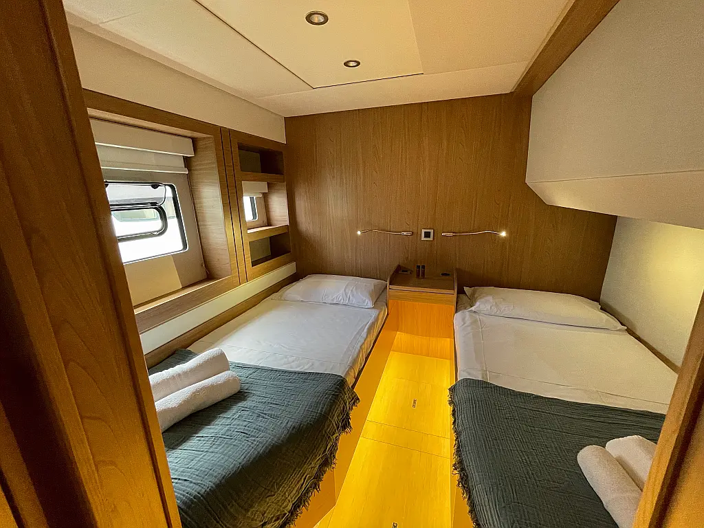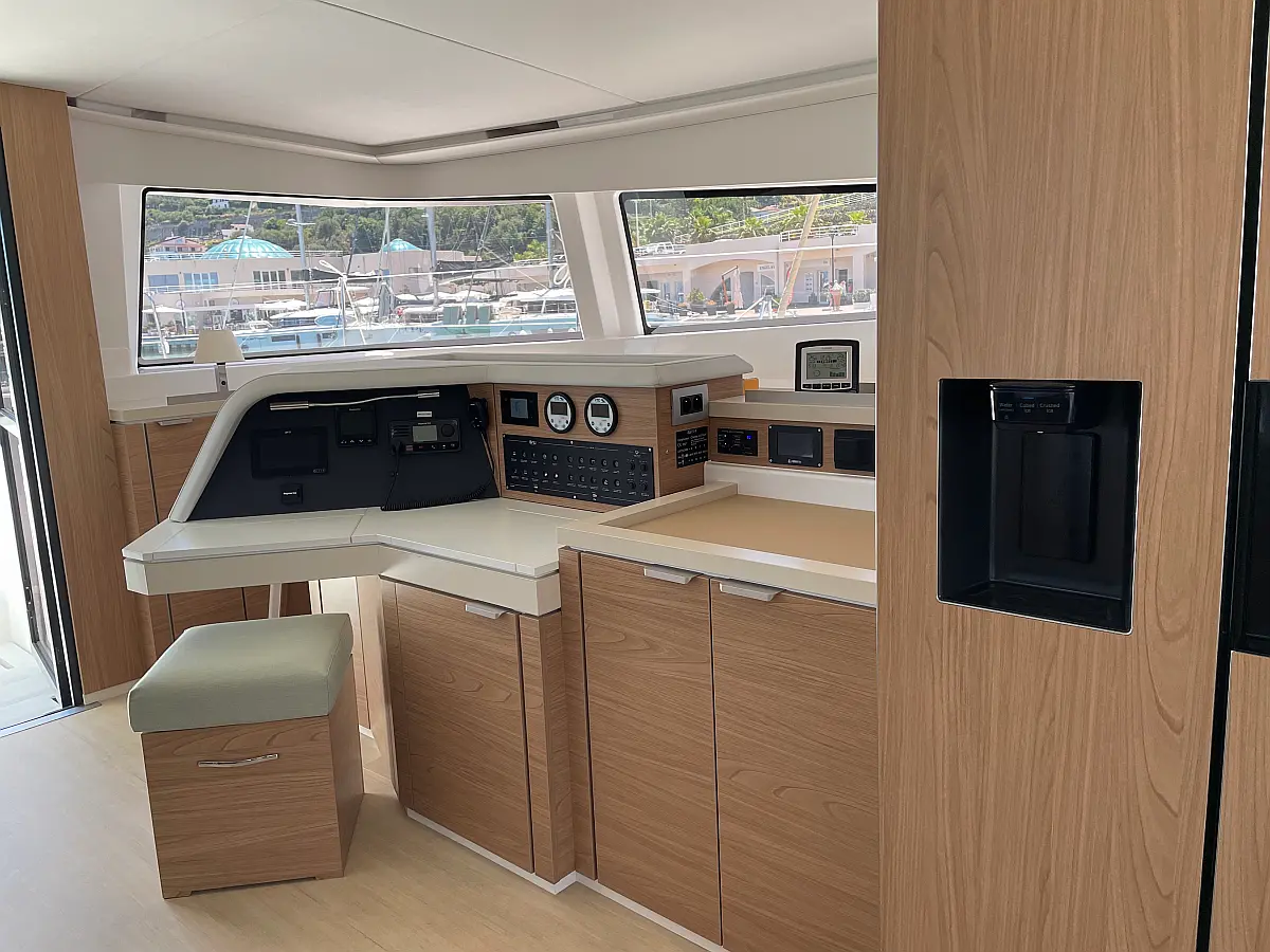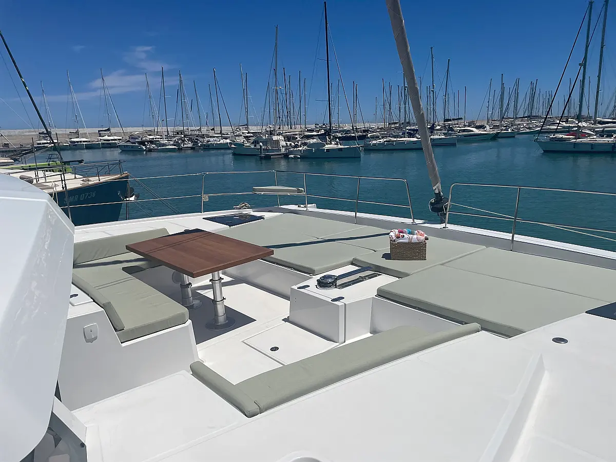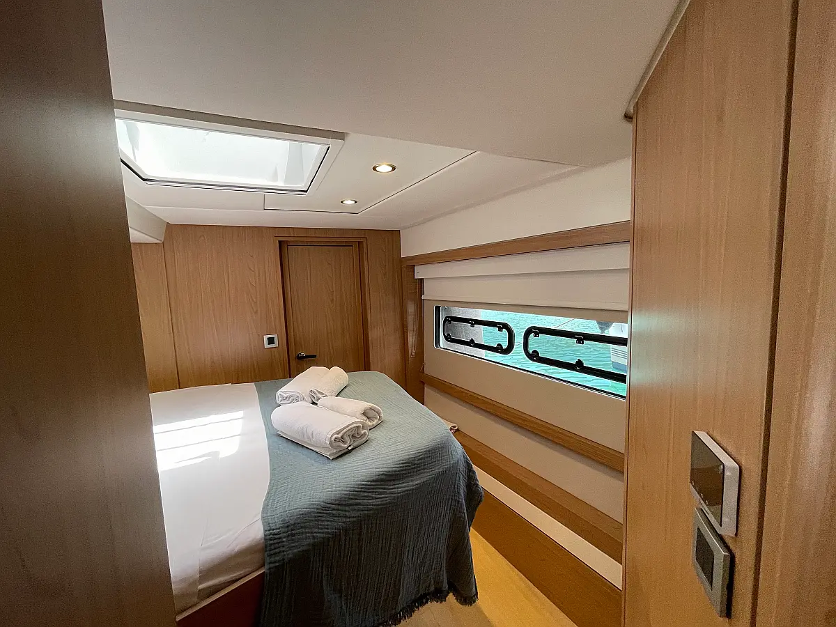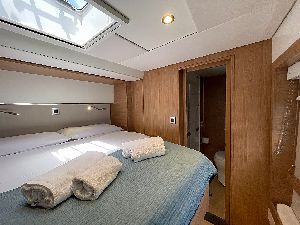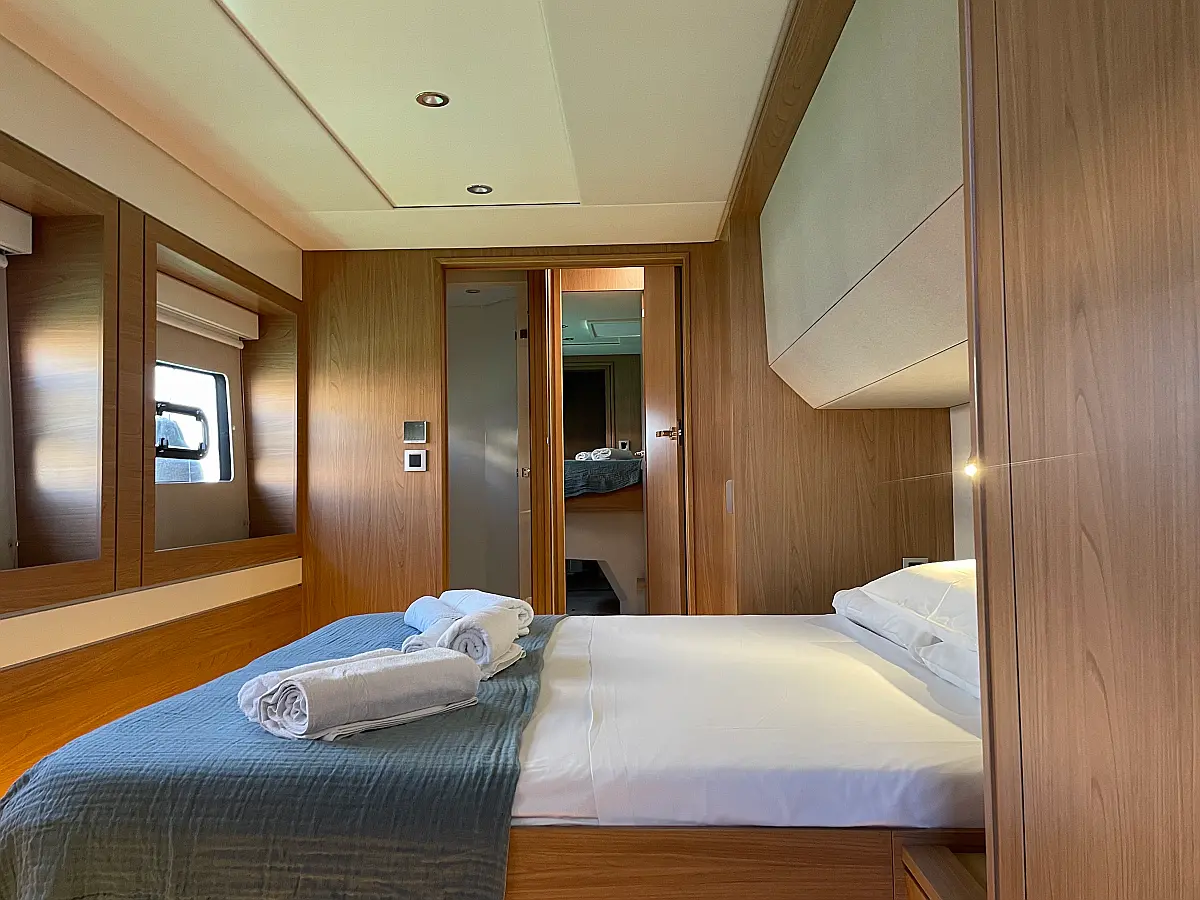 Wi-Fi и Интернет, Кондиционер, Отопление, Бимини, Тиковая палуба, Холодильник, Генератор, Солнечные панели, Динги, Подвесной мотор, Опреснитель морской воды, Электрический туалет, Динамики в кокпите, Ледогенератор, Кофеварка, Подушки в кокпите, Инвертор