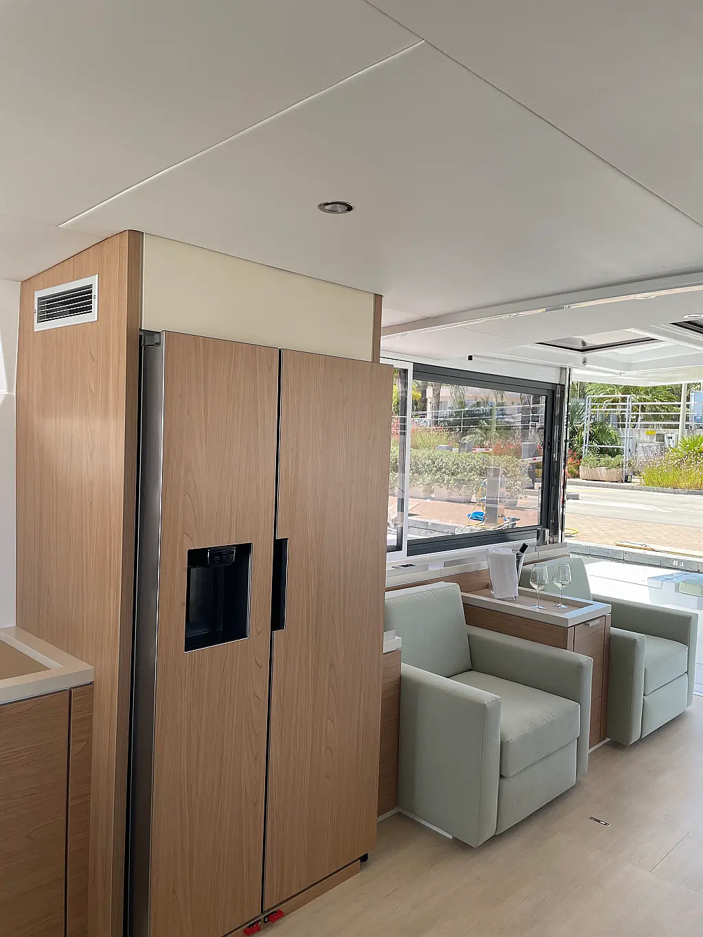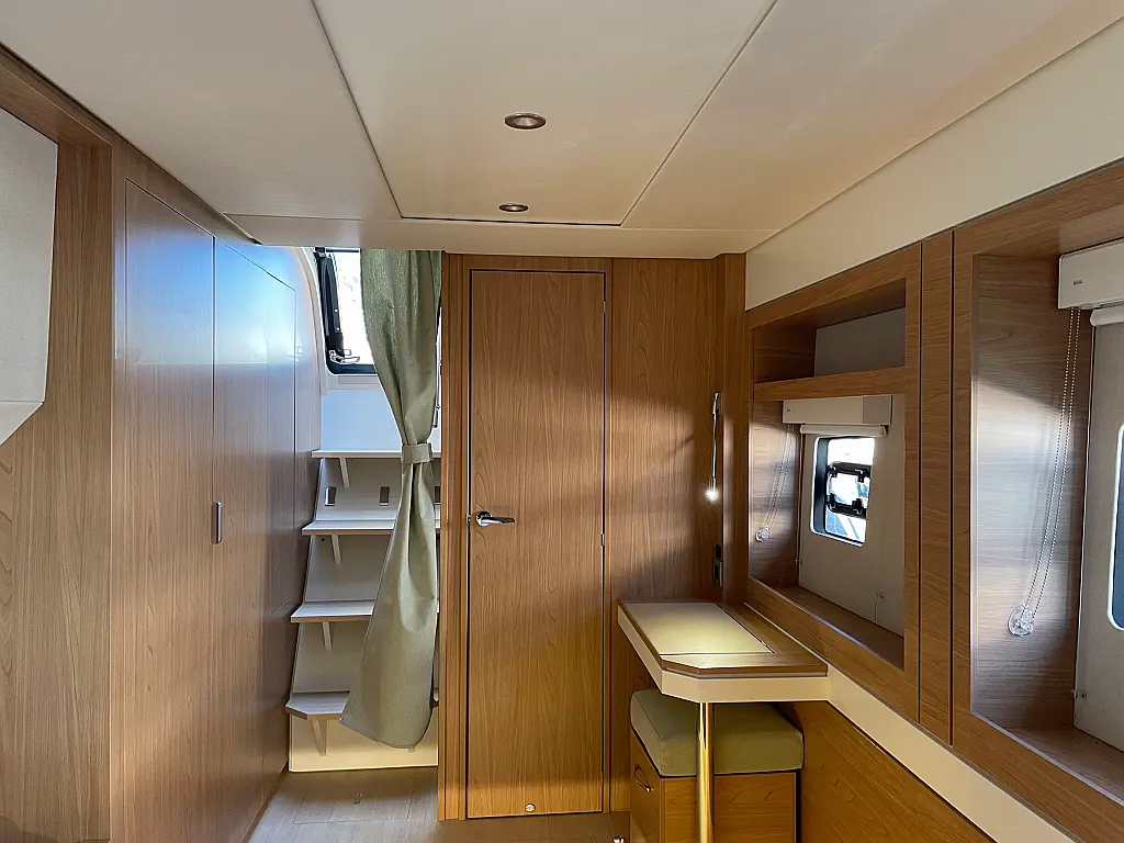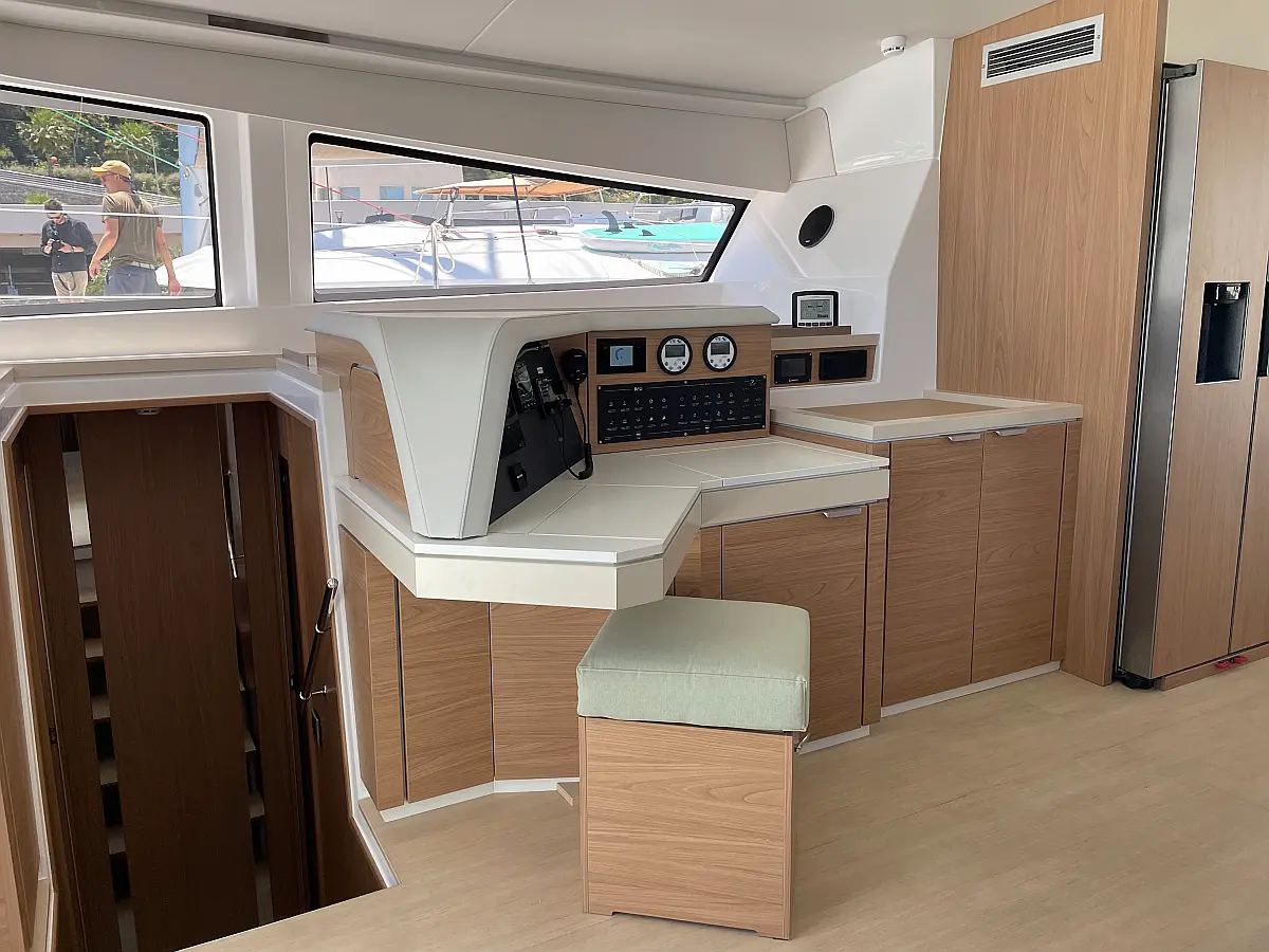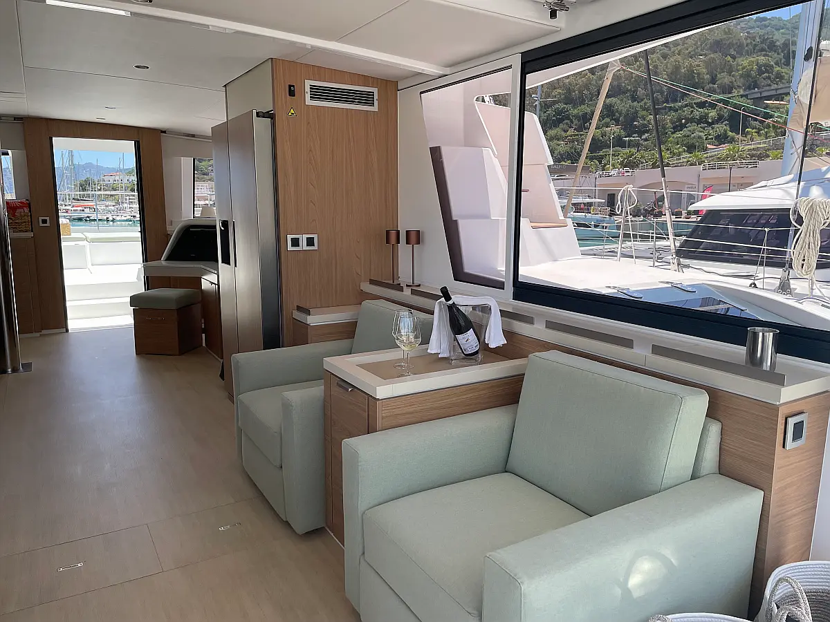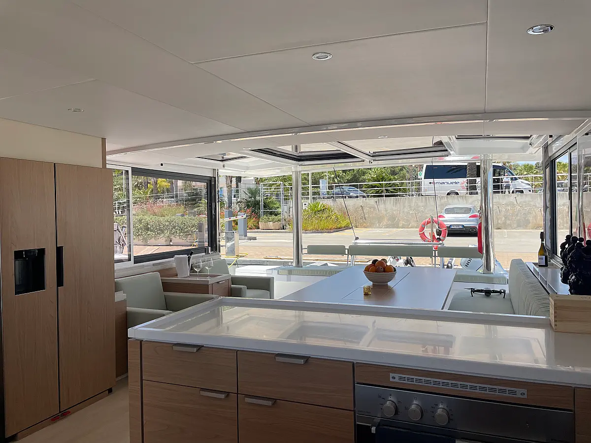 Wi-Fi и Интернет, Кондиционер, Отопление, Бимини, Тиковая палуба, Холодильник, Генератор, Солнечные панели, Динги, Подвесной мотор, Опреснитель морской воды, Электрический туалет, Динамики в кокпите, Ледогенератор, Кофеварка, Подушки в кокпите, Инвертор