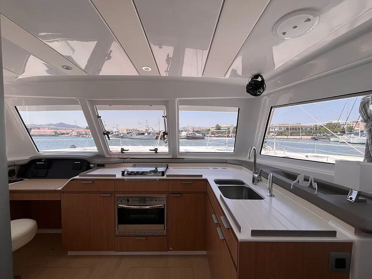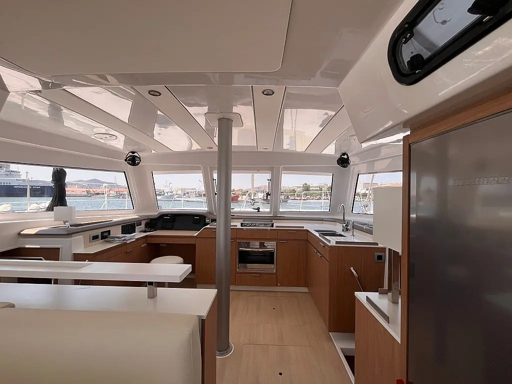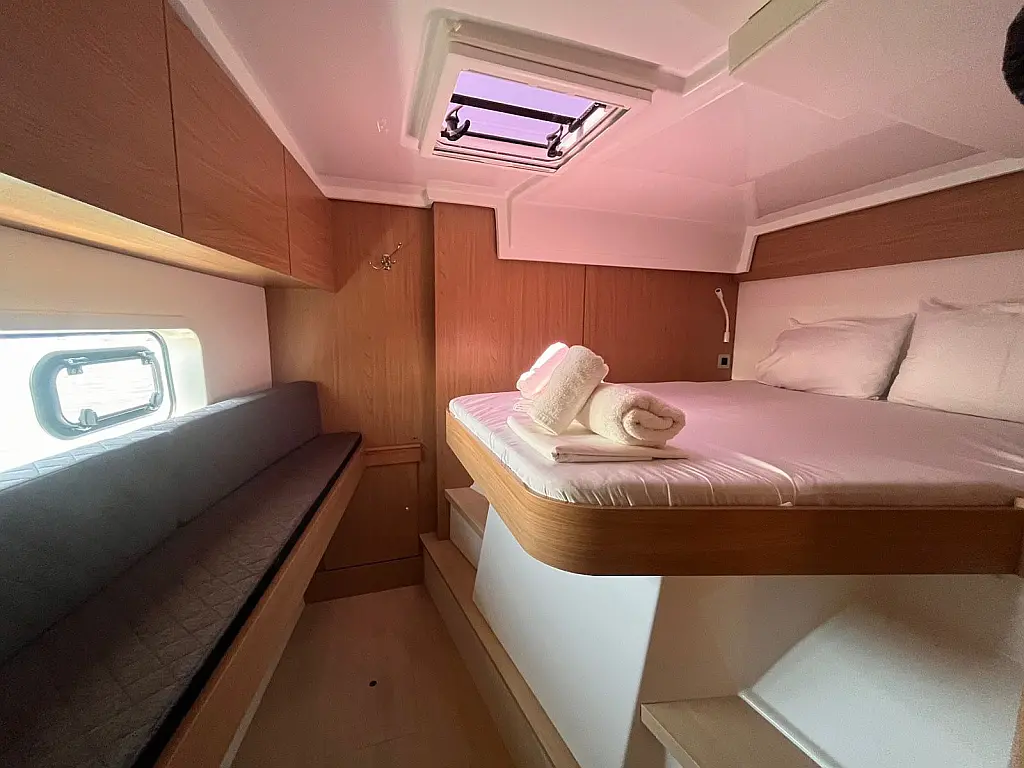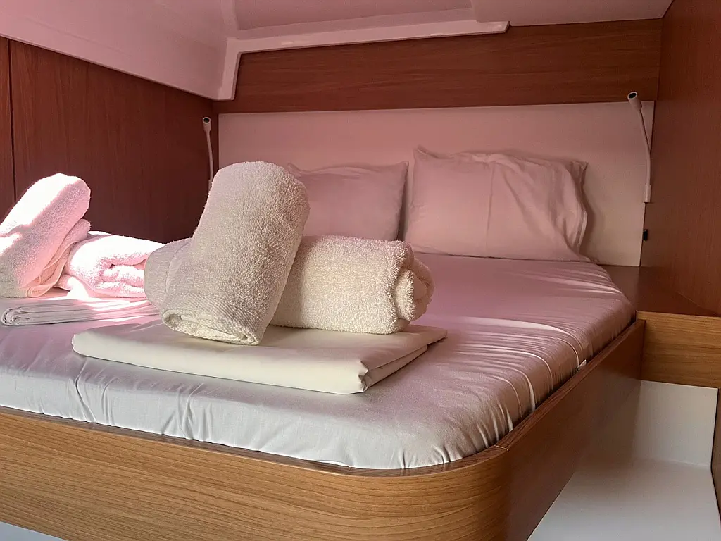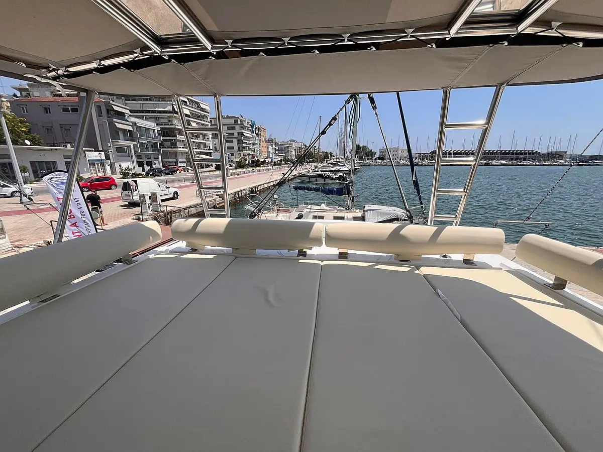 Бимини, Спрейхуд, Динамики в кокпите, Динги, Ледогенератор, Сточный бак, Подушки в кокпите, Плавательная платформа, Флайбридж, Кофеварка, Холодильник, Инвертор