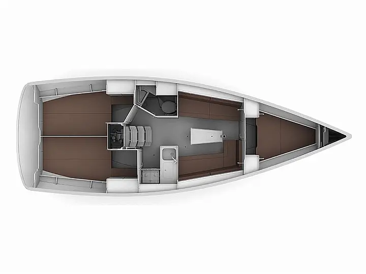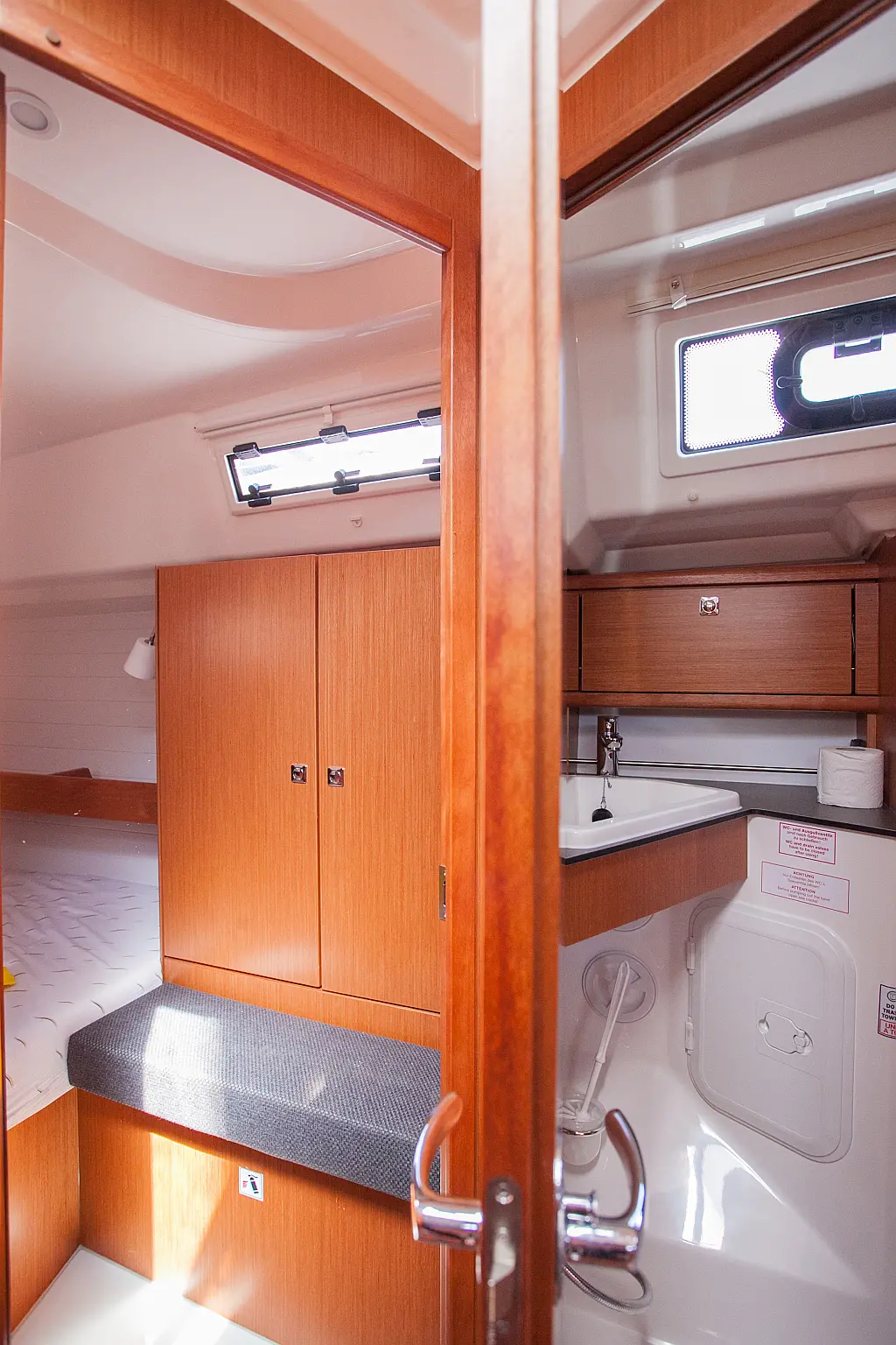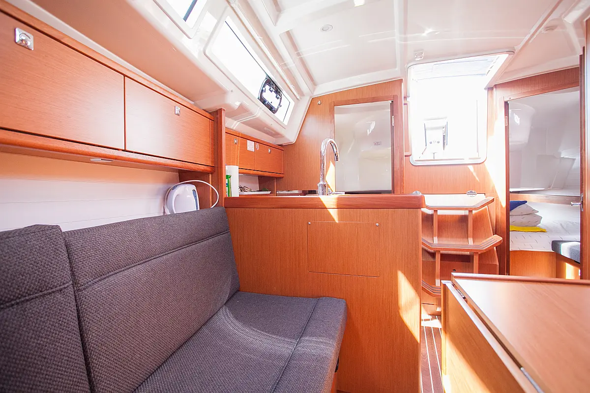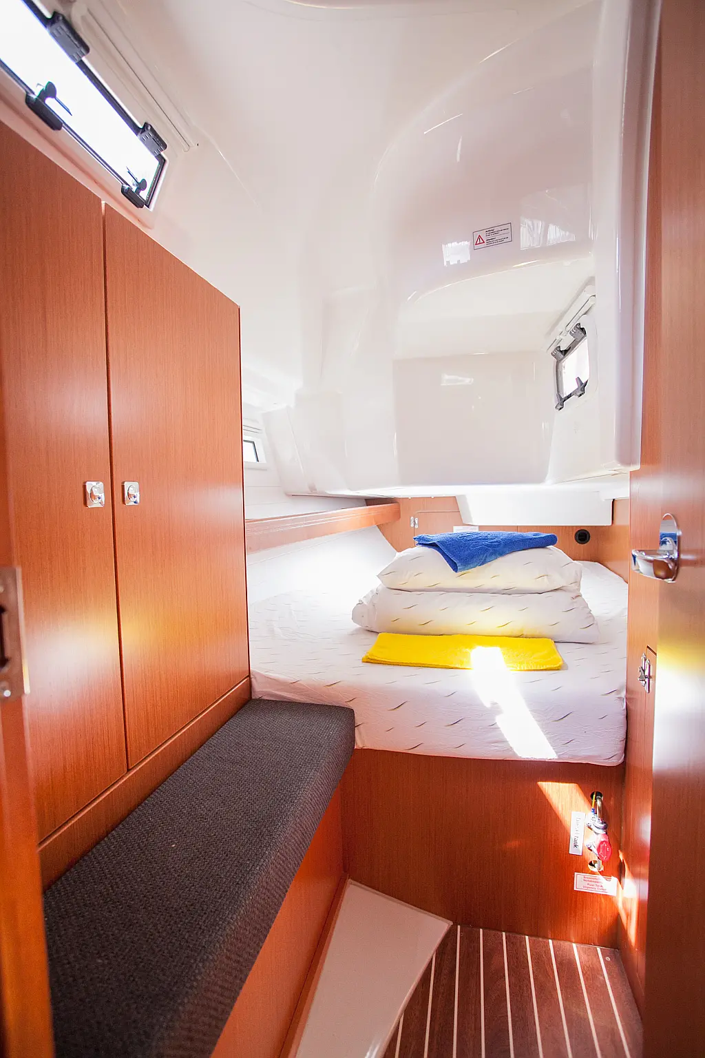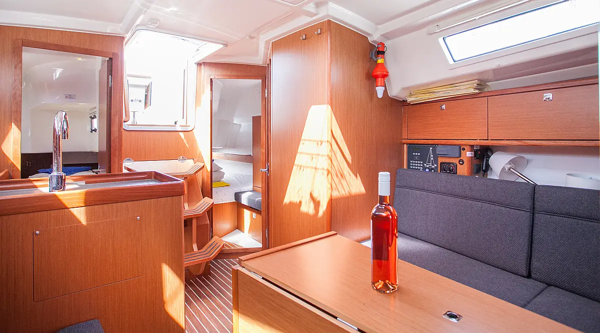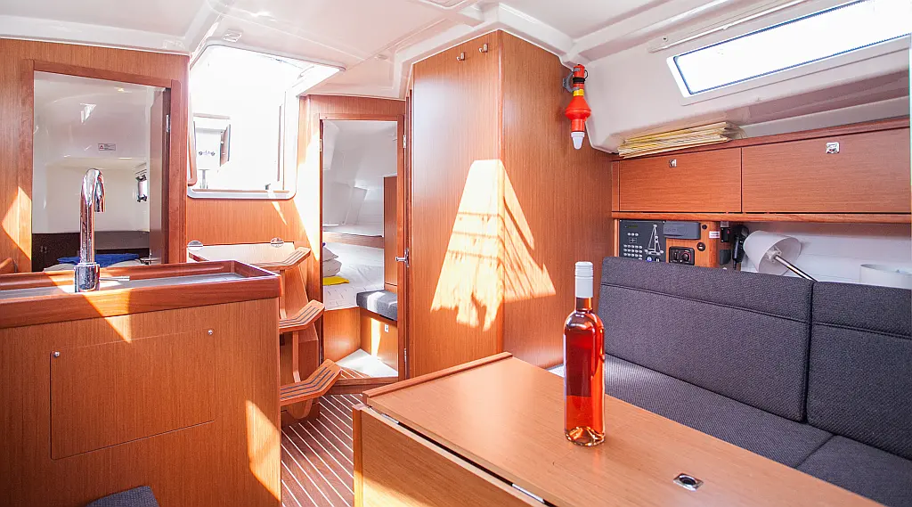 Бимини, Спрейхуд, Подвесной мотор, Электрический туалет, Тиковый кокпит, Отопление, Солнечные панели, Подушки в кокпите