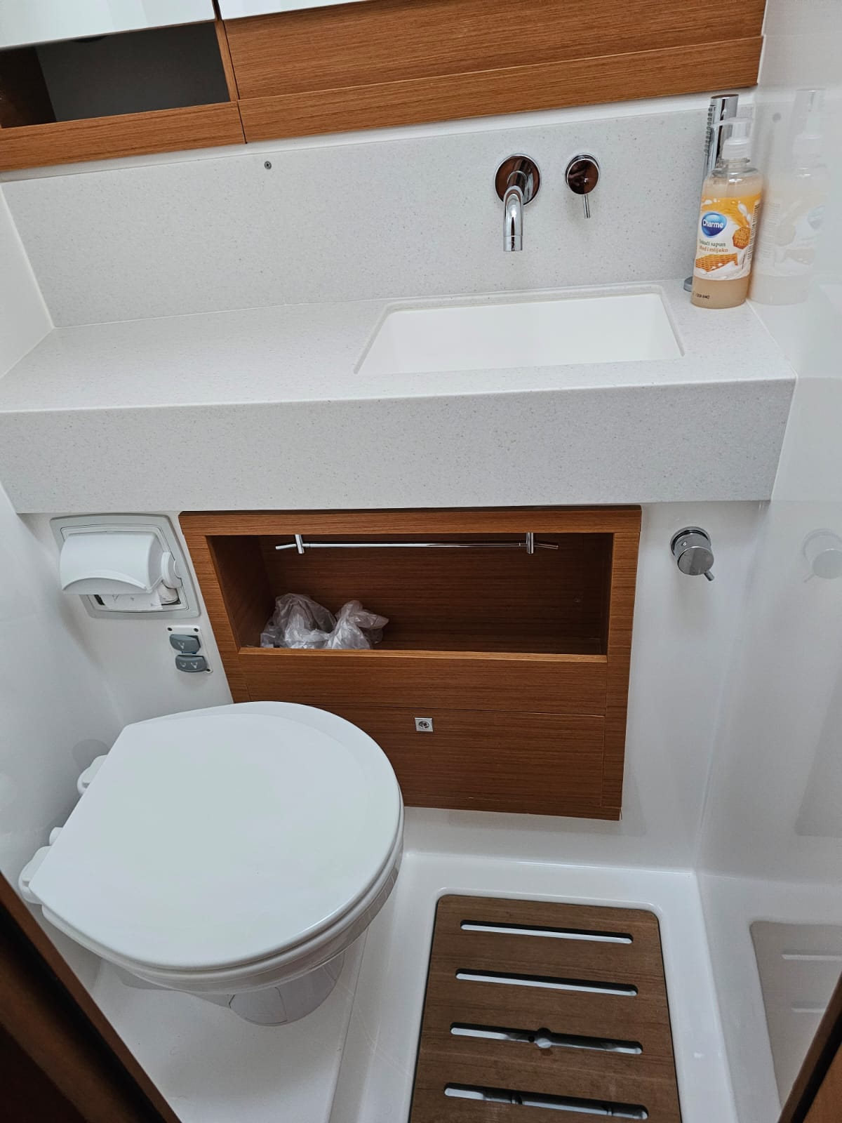 Подвесной мотор, Спрейхуд, Бимини, Подушки в кокпите, Кофеварка, Холодильник, Инвертор, Ледогенератор, Электрический туалет, Отопление