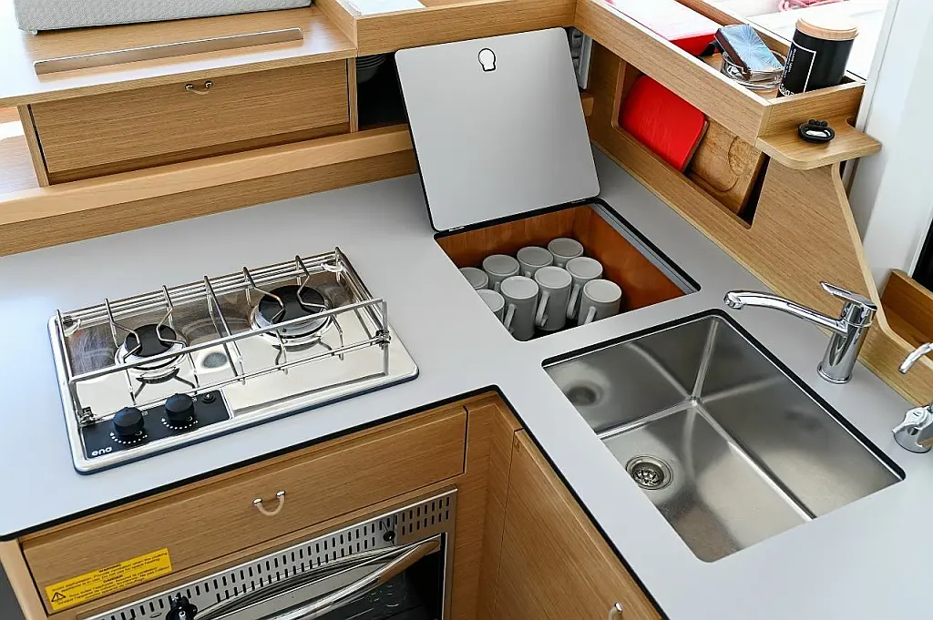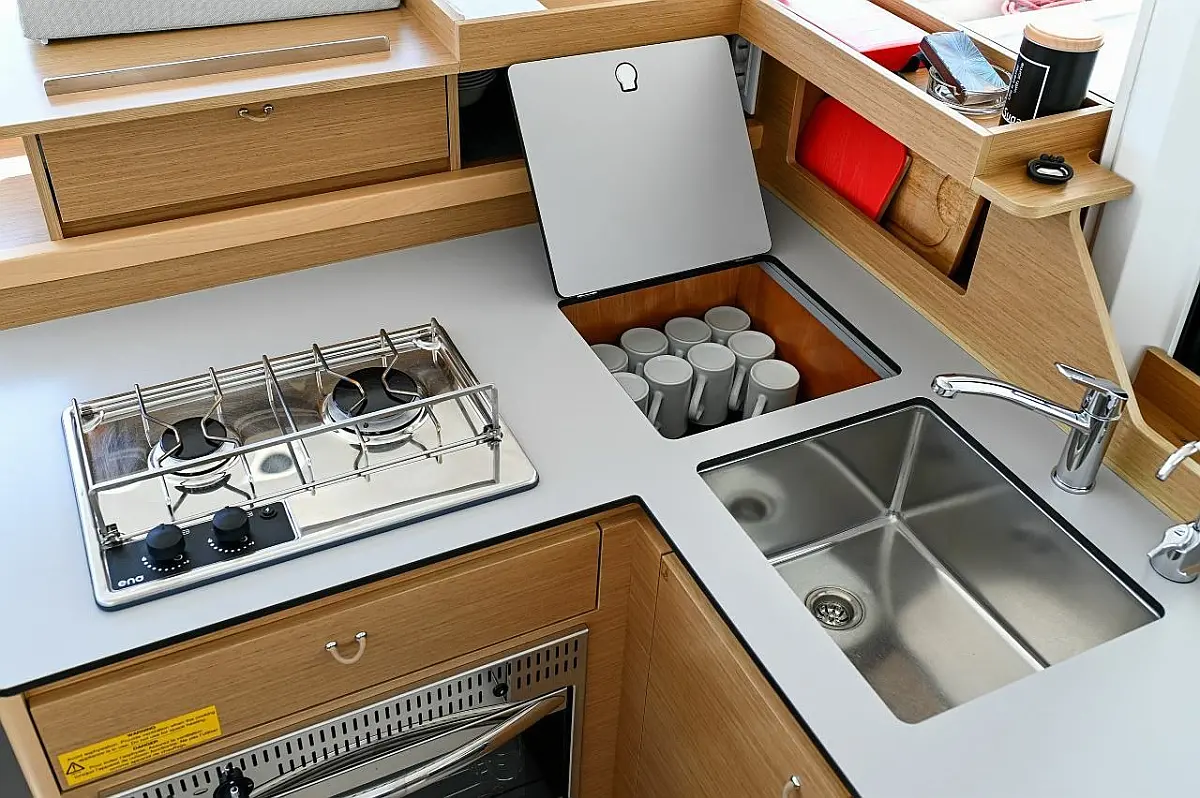 Подушки в кокпите, Электрический туалет, Динги, Холодильник