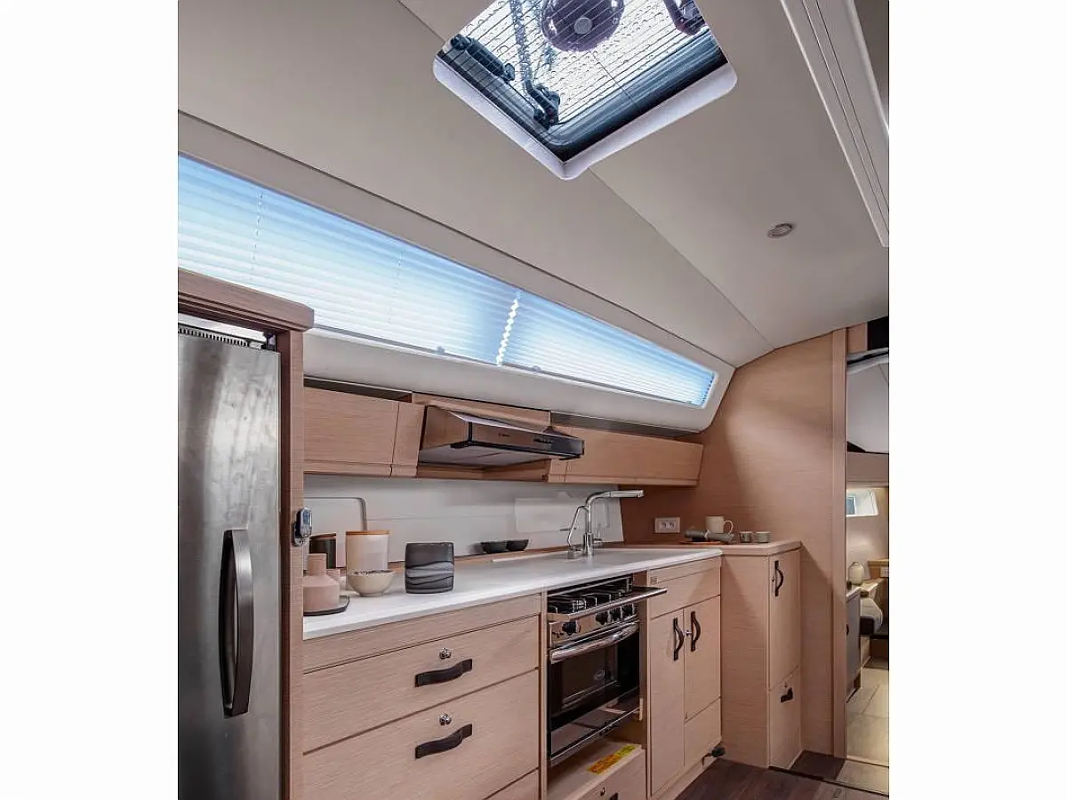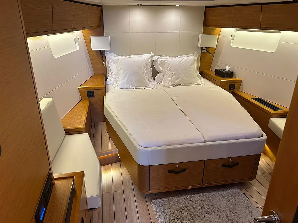 Кондиционер, Динги, Отопление, Кофеварка, Подвесной мотор, Холодильник, Солнечные панели, Электрические лебедки, Бимини, Инвертор, Тиковая палуба, Динамики в кокпите