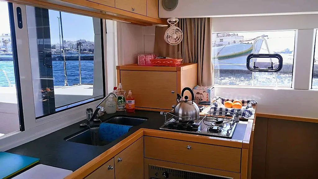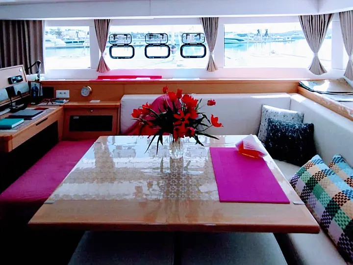 Спрейхуд, Бимини, Солнечные панели, Динги, Подвесной мотор, Холодильник, Электрический туалет, Подушки в кокпите