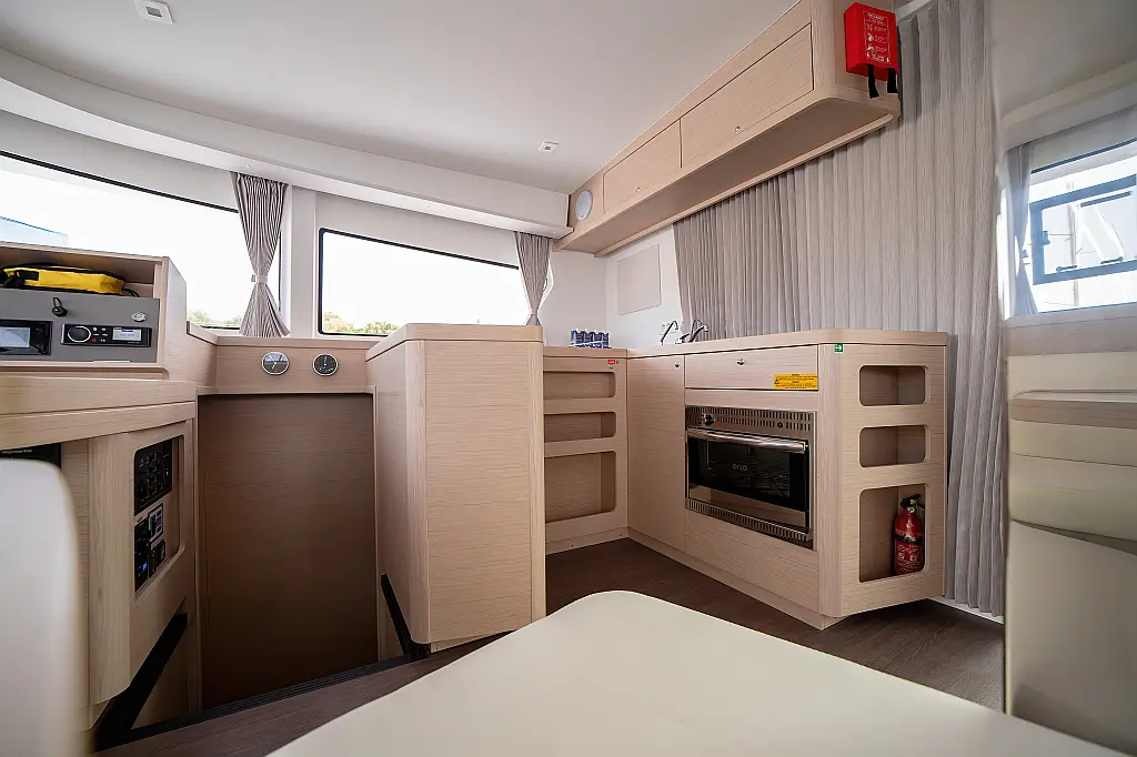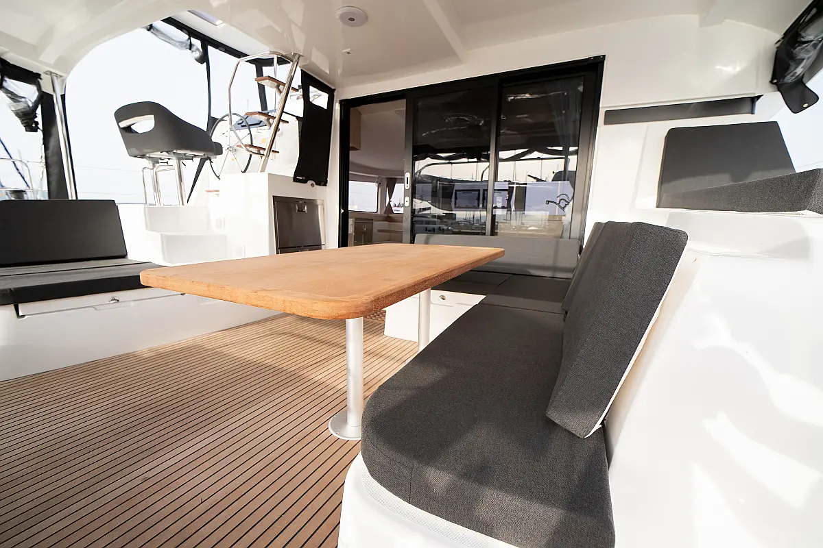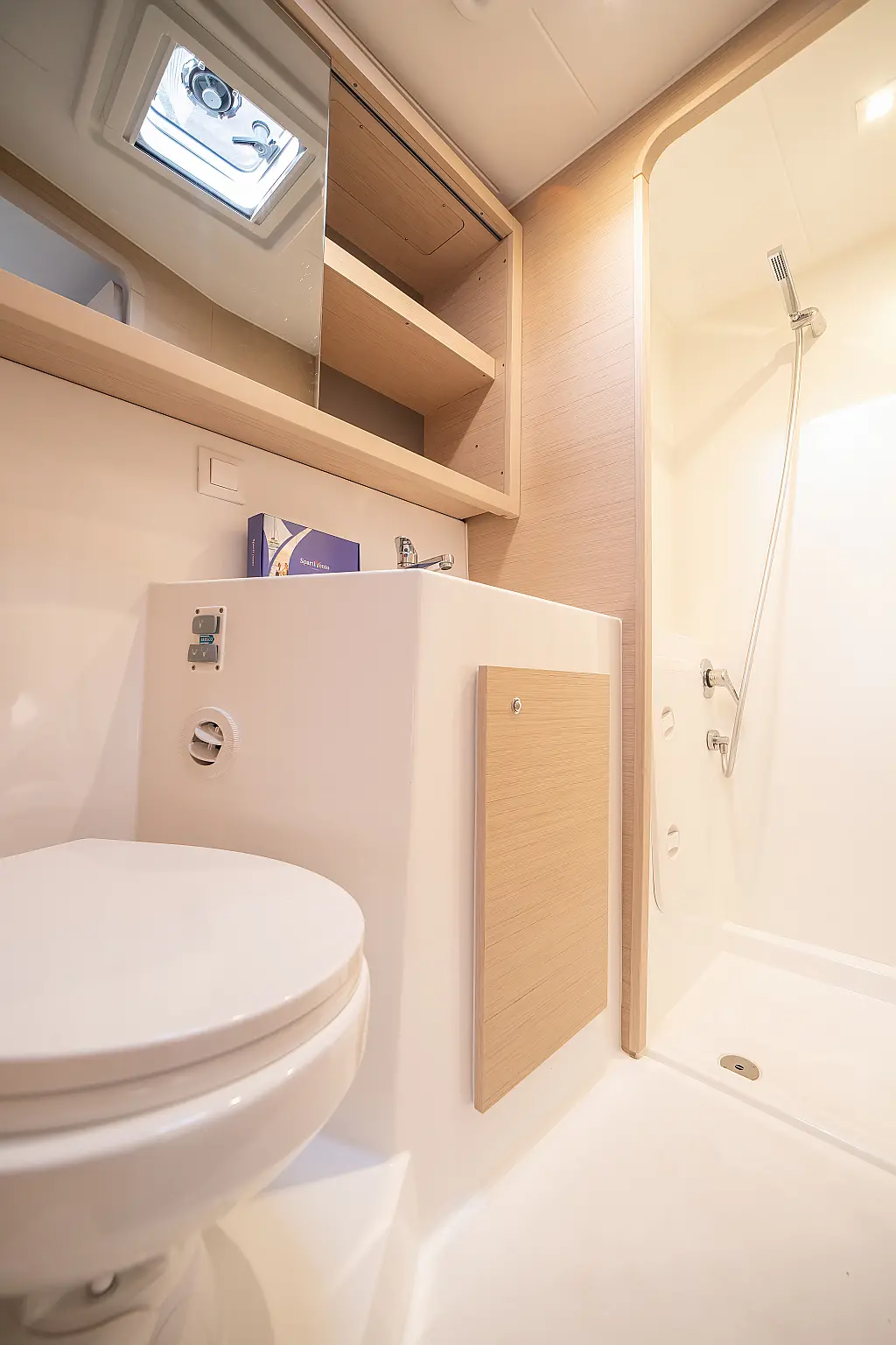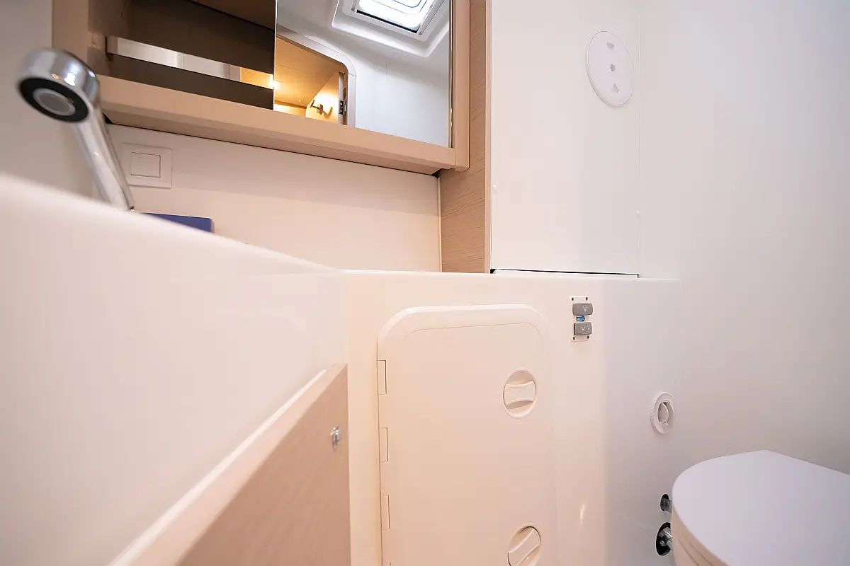 Динги, Подвесной мотор, Тиковый кокпит, Электрические лебедки, Кондиционер, Инвертор, Подушки в кокпите, Опреснитель морской воды, Генератор, Электрический туалет, Холодильник