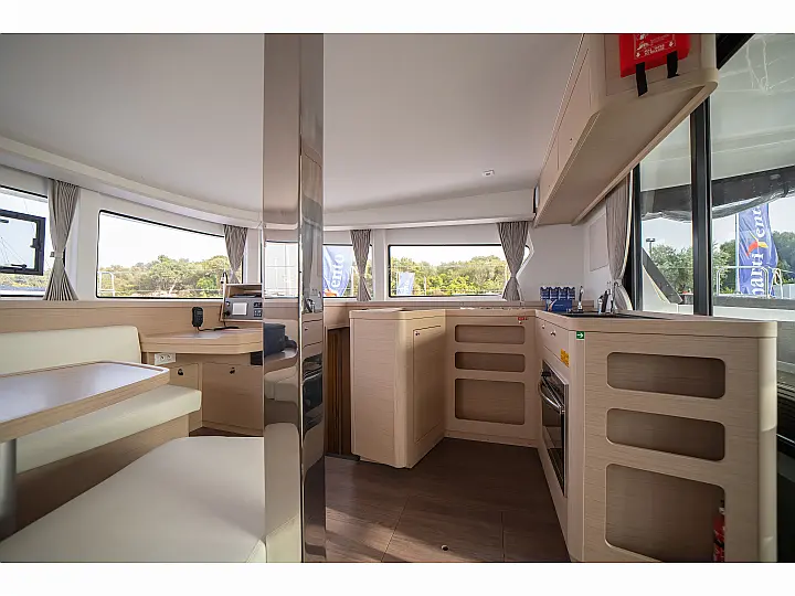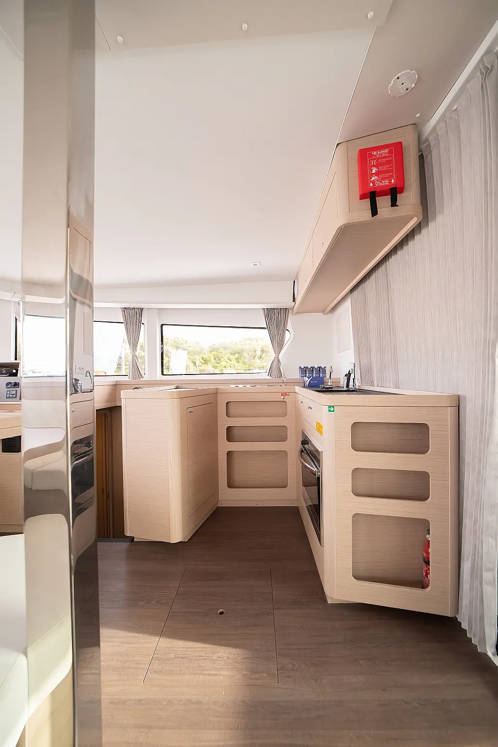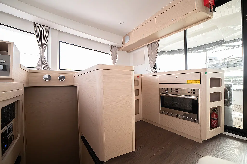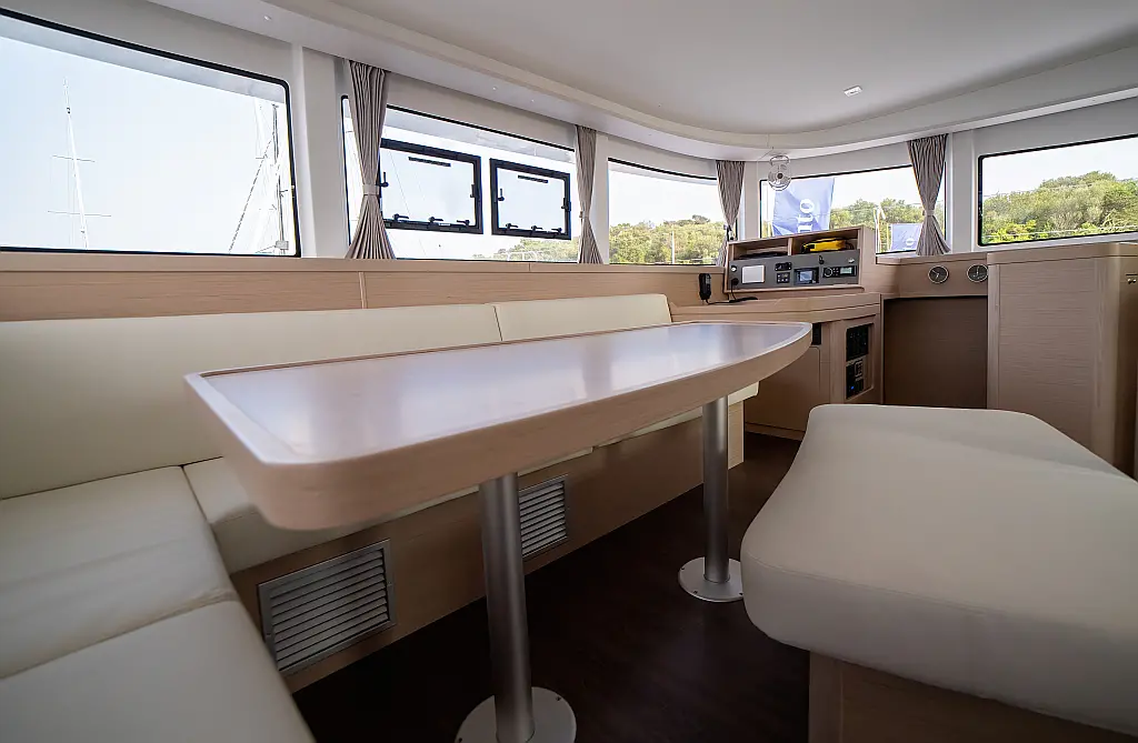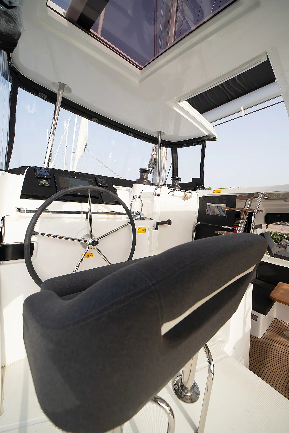 Динги, Подвесной мотор, Тиковый кокпит, Электрические лебедки, Кондиционер, Инвертор, Подушки в кокпите, Опреснитель морской воды, Генератор, Электрический туалет, Холодильник
