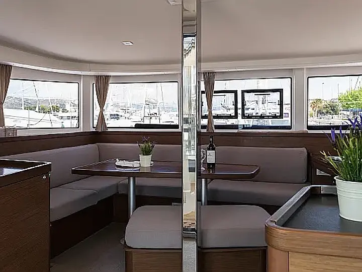 Холодильник, Кондиционер, Бимини, Подушки в кокпите, Динамики в кокпите, Динги, Кофеварка, Электрический туалет, Генератор, Отопление, Сточный бак, Инвертор, Подвесной мотор, Тиковый кокпит, Wi-Fi и Интернет