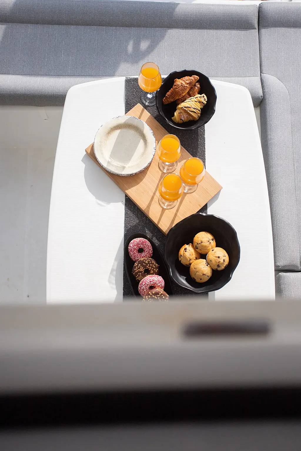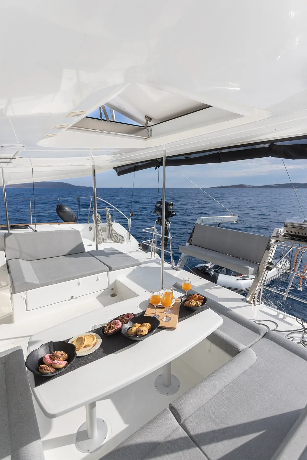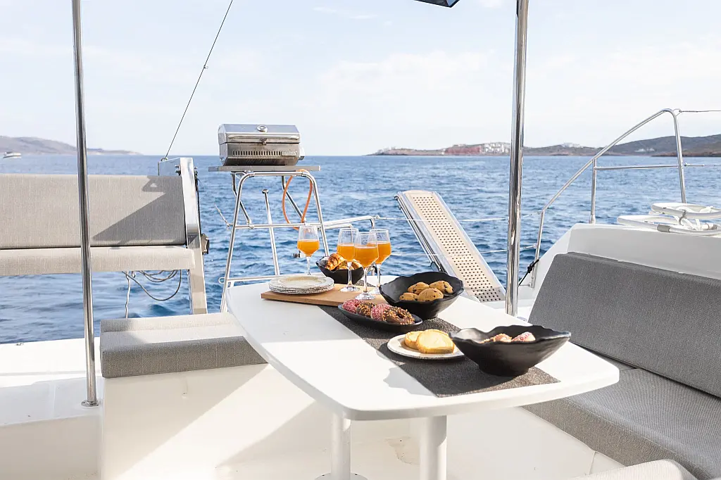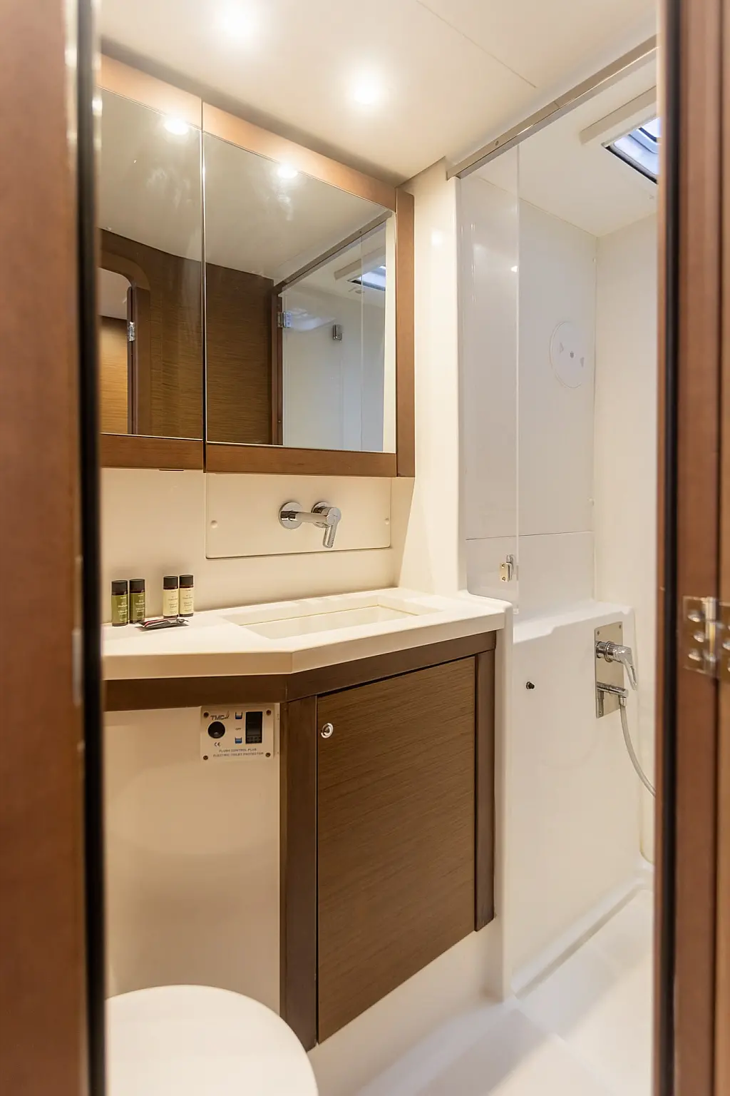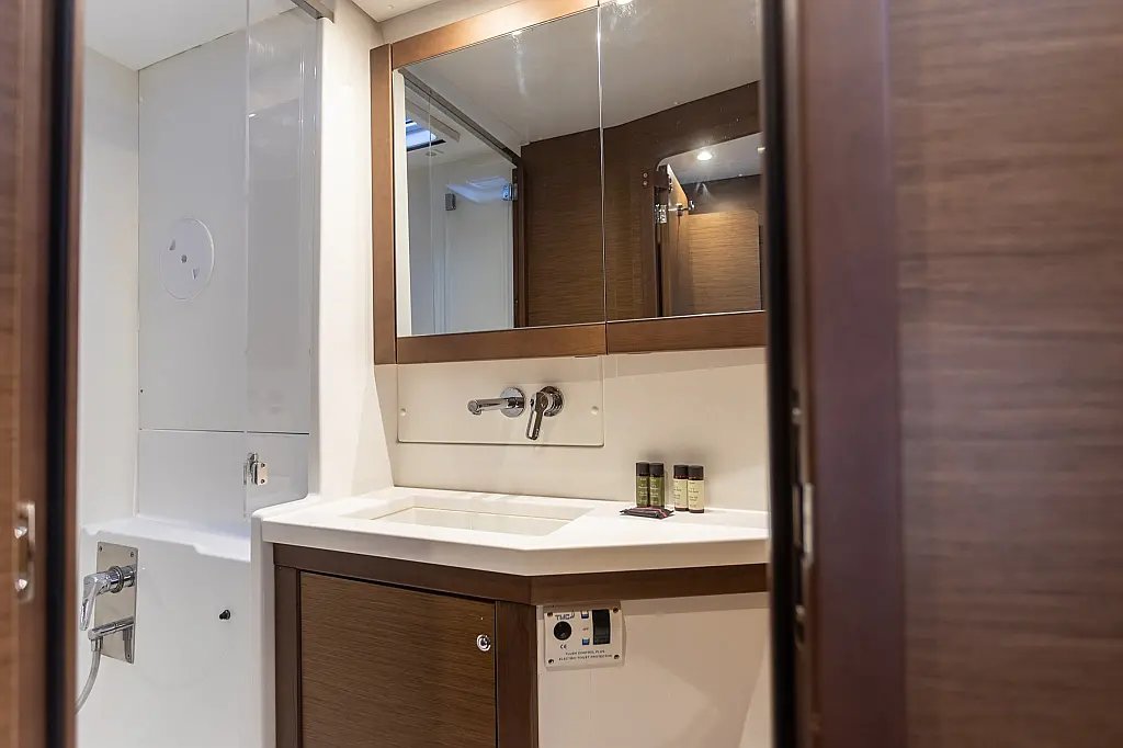 Холодильник, Кондиционер, Бимини, Электрический туалет, Электрические лебедки, Кофеварка, Генератор, Гидравлический трап, Ледогенератор, Подвесной мотор, Солнечные панели, Спрейхуд, Опреснитель морской воды
