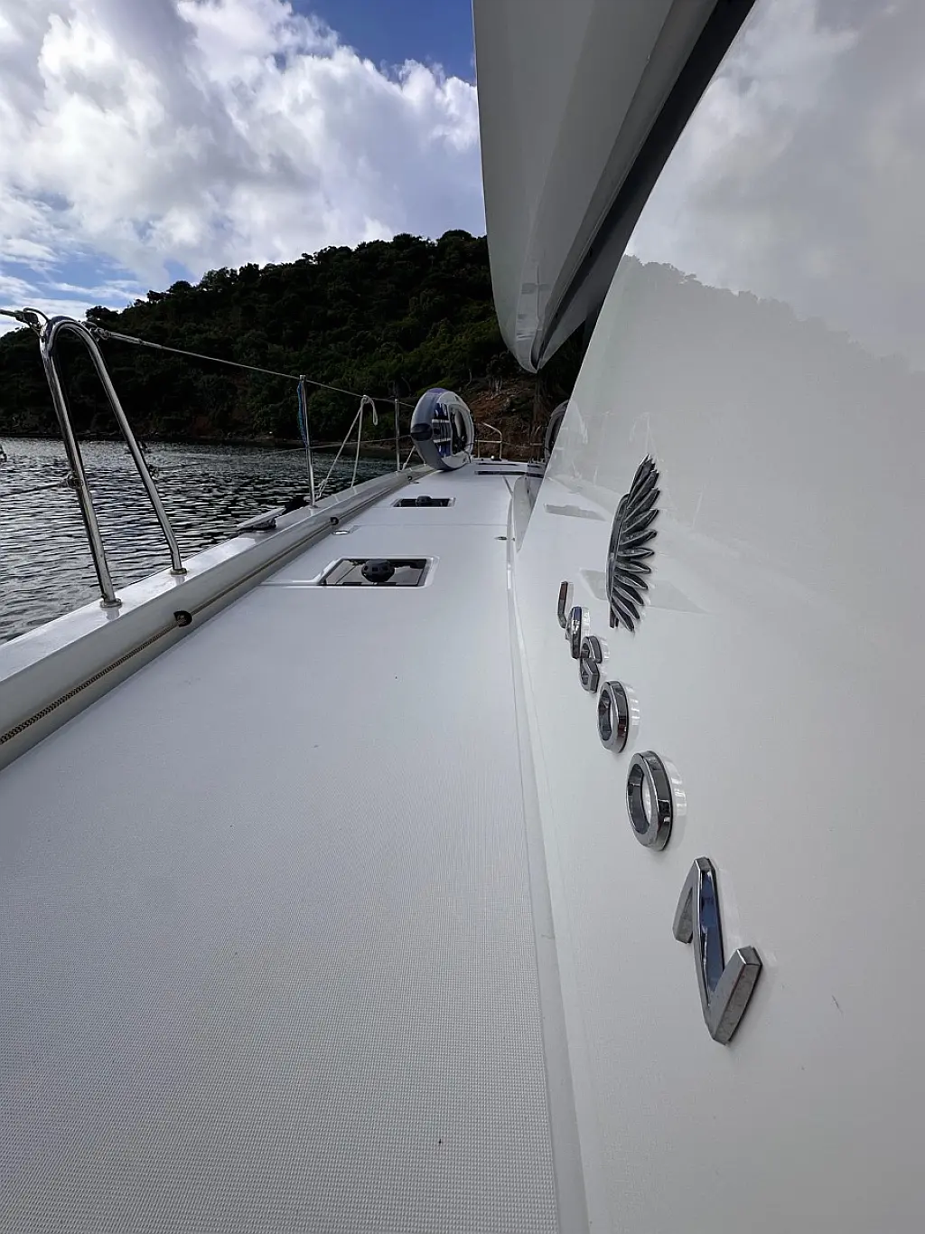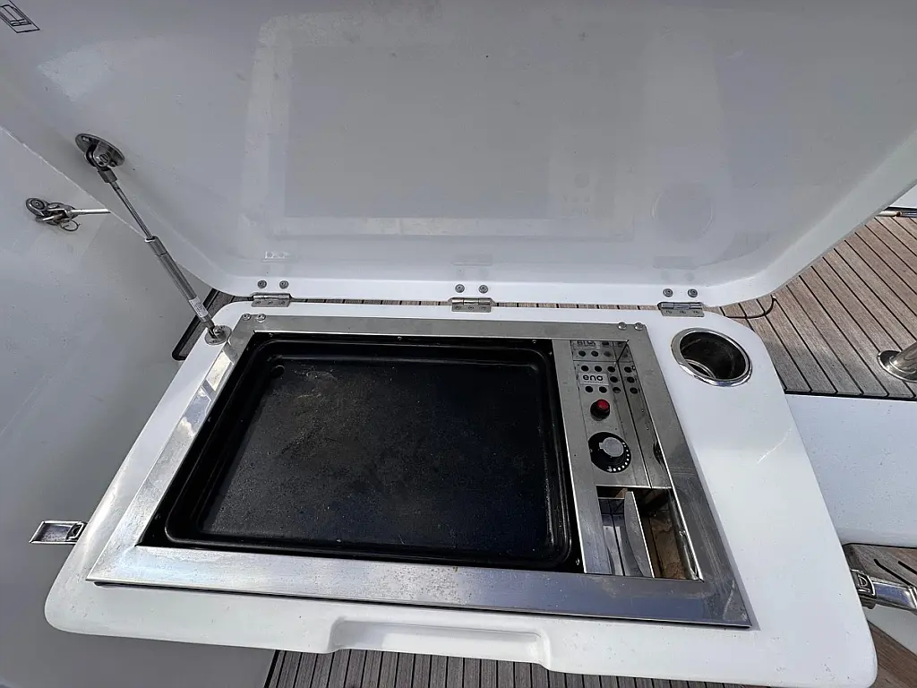 Подушки в кокпите, Динамики в кокпите, Кофеварка, Генератор, Спрейхуд, Тиковый кокпит, Тиковая палуба, Электрический туалет, Кондиционер, Опреснитель морской воды