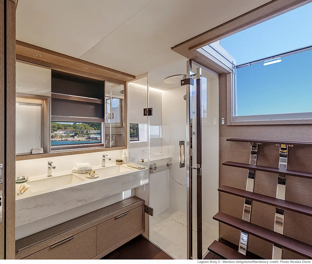 Холодильник, Гидравлический трап, Флайбридж, Кондиционер, Динамики в кокпите, Динги, Инвертор, Опреснитель морской воды, Кофеварка, Генератор, Электрический туалет