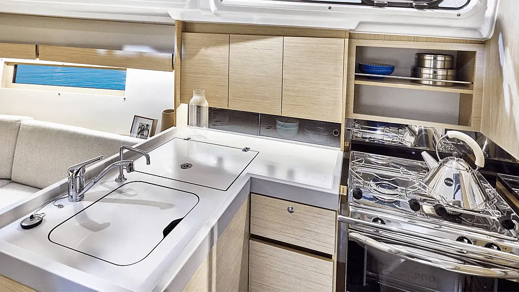 Холодильник, Кофеварка, Бимини, Динамики в кокпите, Подушки в кокпите, Динги