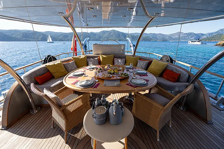 5 5 cabins: 1 Front Master, 1 Aft Master, 1 Triple, 2 Double Cabins; all en-suite.