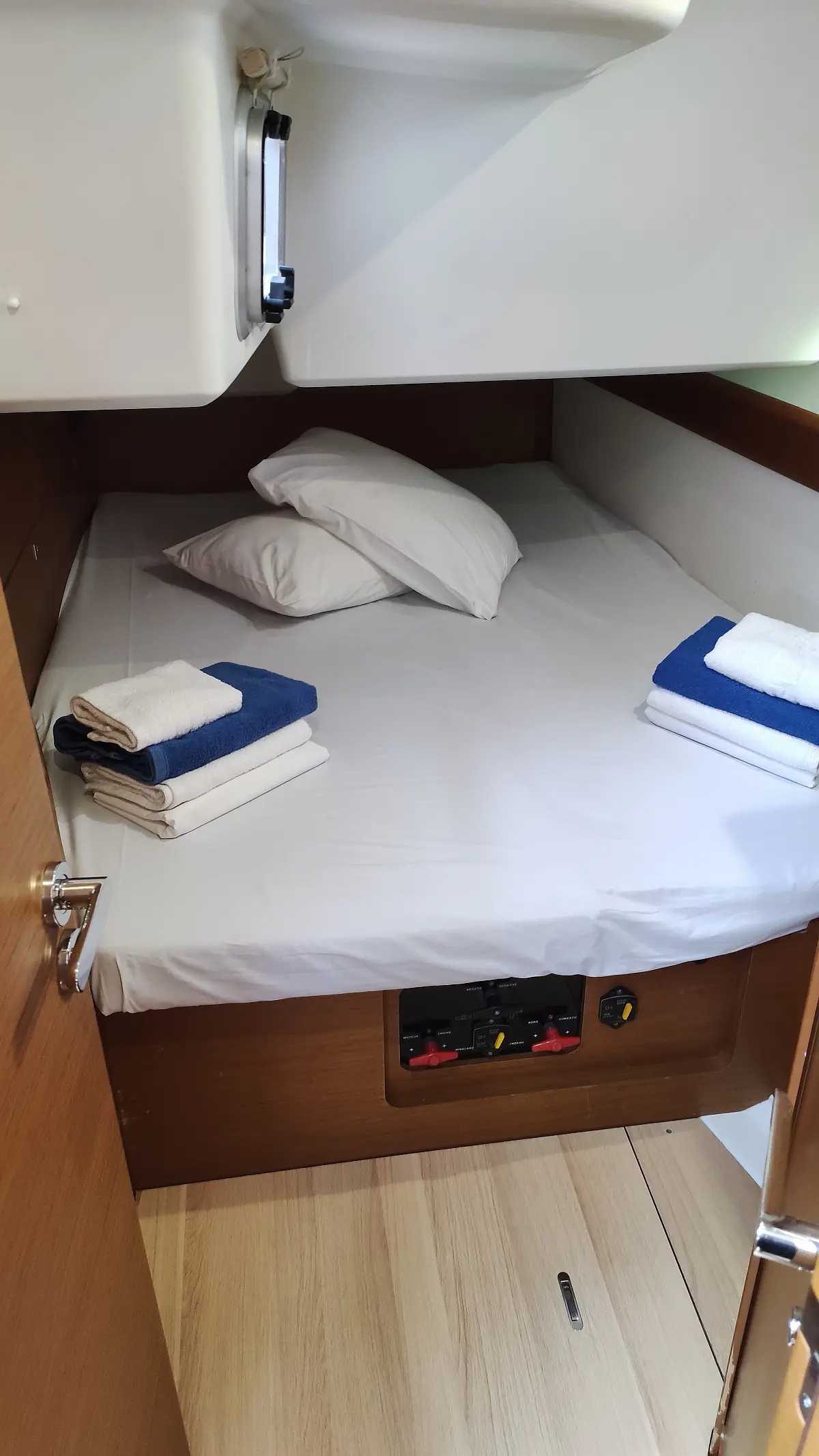Динамики в кокпите, Подушки в кокпите, Холодильник, Тиковый кокпит, Плавательная платформа, Сточный бак, Спрейхуд, Динги, Бимини, Солнечные панели