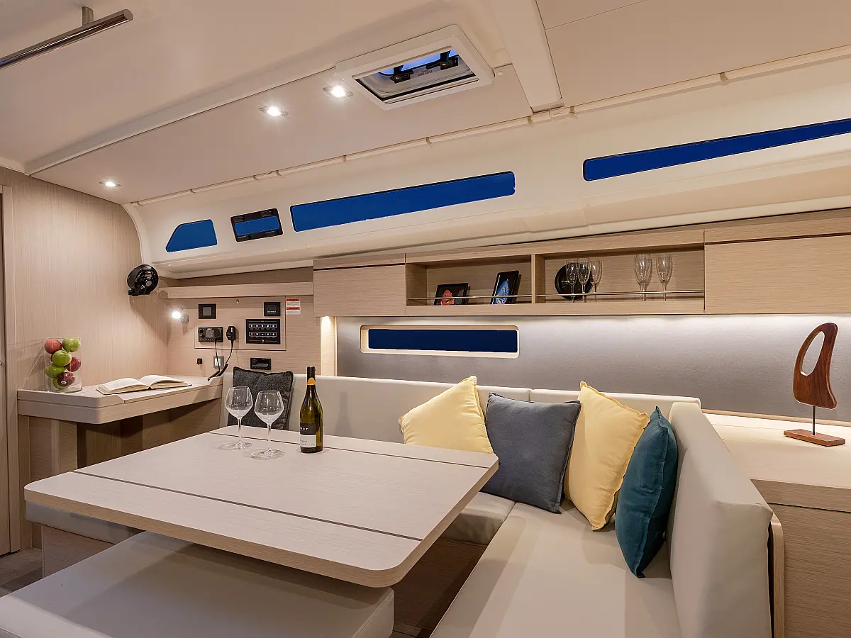 Холодильник, Кофеварка, Бимини, Динамики в кокпите, Подушки в кокпите, Динги