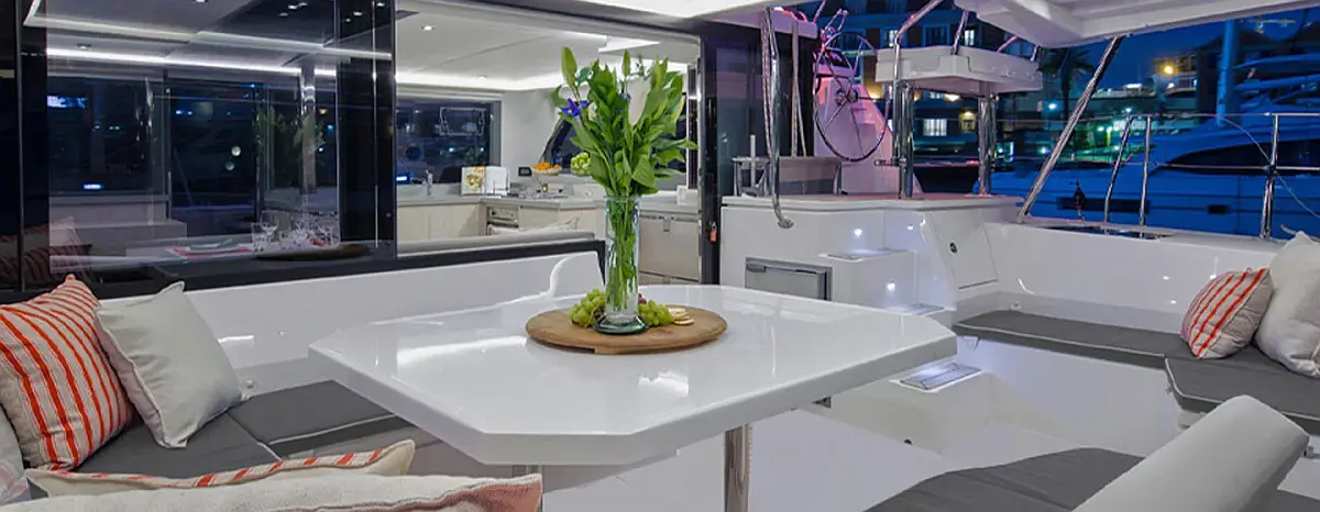 Холодильник, Бимини, Кондиционер, Динамики в кокпите, Подушки в кокпите, Генератор, Солнечные панели, Электрический туалет, Опреснитель морской воды